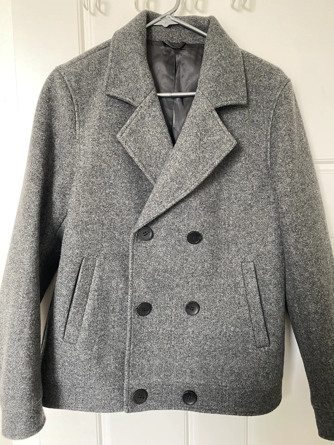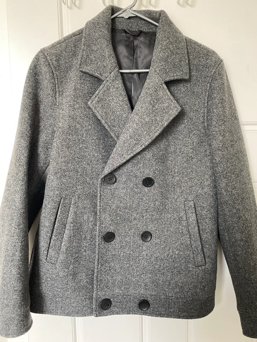 20Selling a stylish grey peacoat in size medium. It's in great condition and perfect for the cooler weather. A classic addition to any wardrobe!