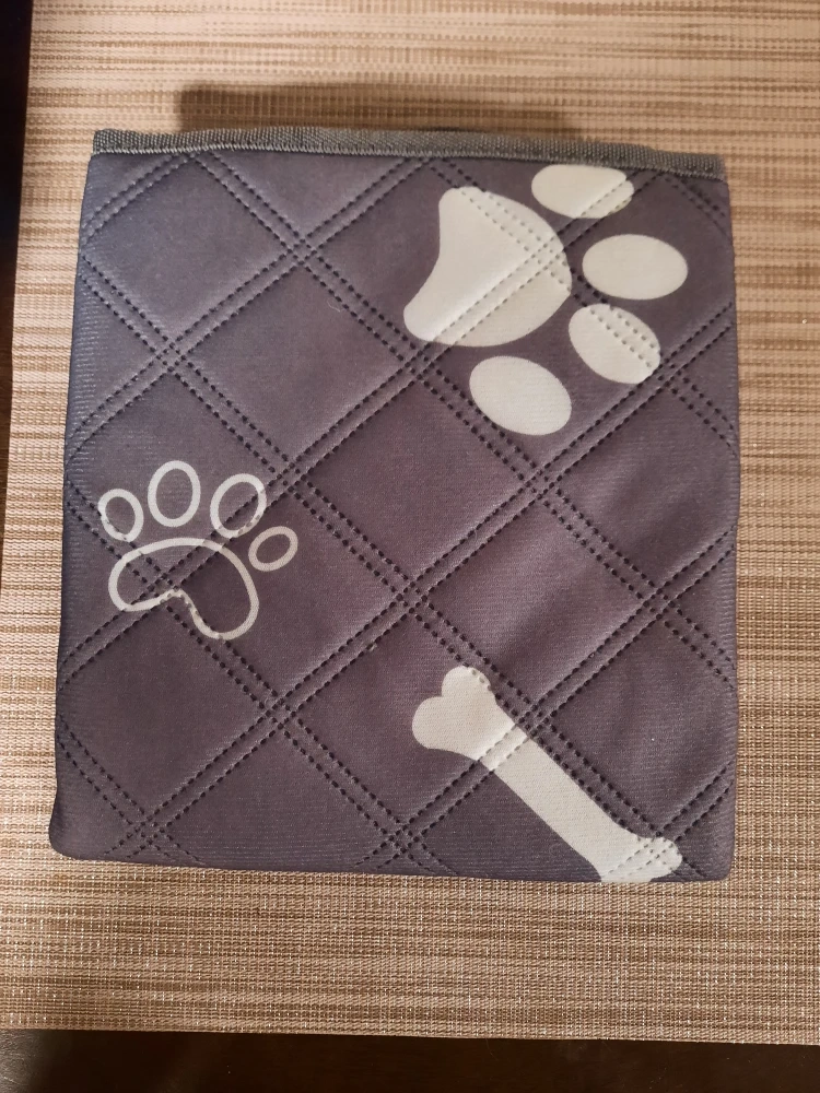 140A cute grey pet Pea Mat. featuring a quilted pattern with paw prints and bone design! 2 Mats