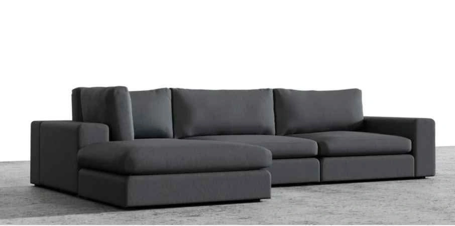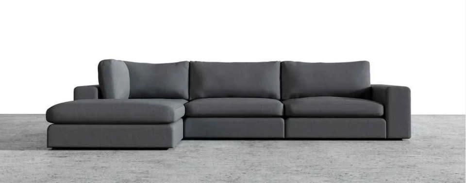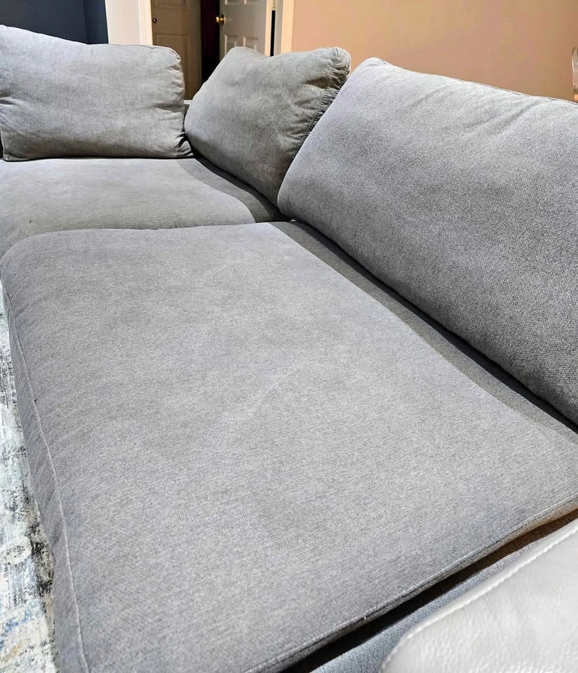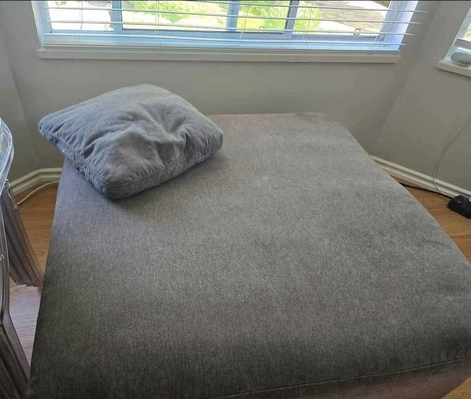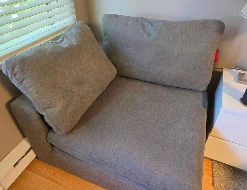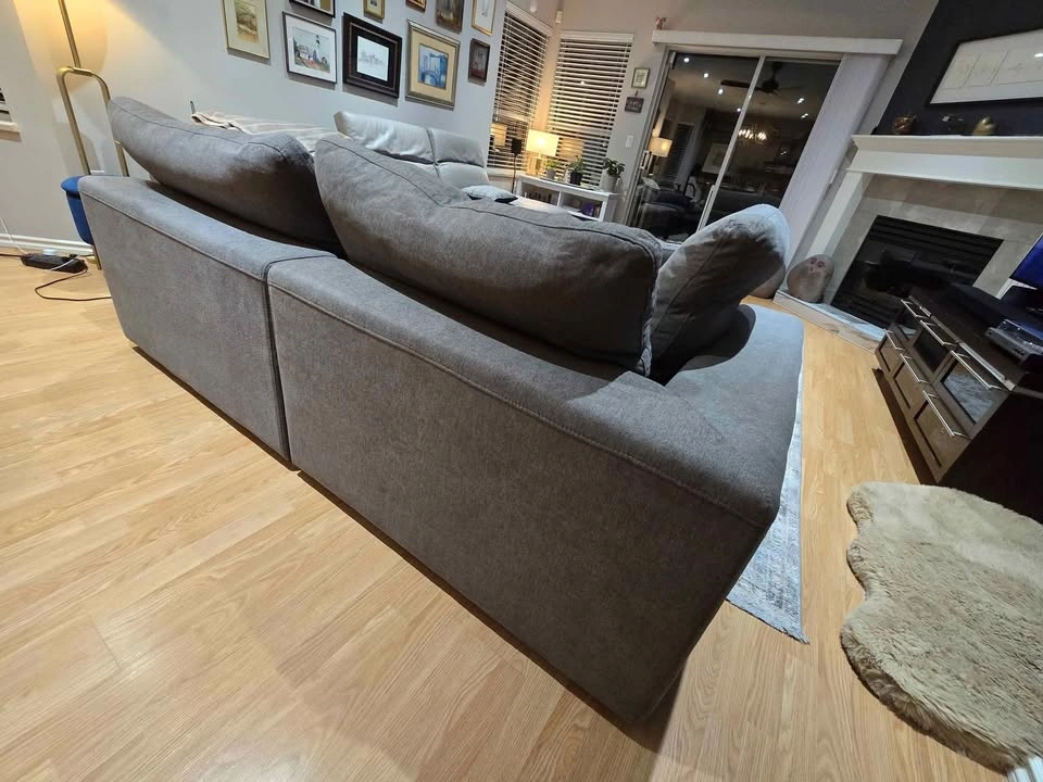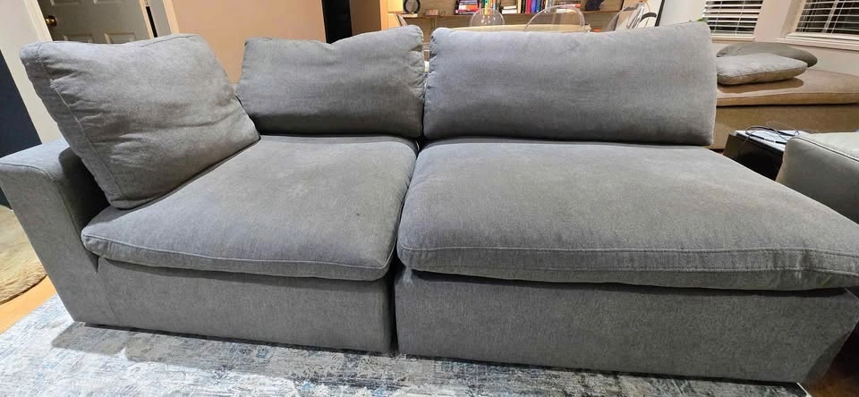 VERY COMFORTABLE sectional couch, modular; fabric, feather filled cushions, clean. The ottoman can be added to either side, or used separately. Each of the three modules measures about 40" with a seat depth of 33", the ottoman is 40 x 40". The entire couch is 10 ft long and approx 6'8" for the L section, with the ottoman. Large enough for a house sized living room but fits a condo as well. Has a slight discoloration on one side of the ottoman - hence the price (paid over 3k on it not even 2 years ago). Pick up in Fleetwood, 82 Ave and 160 Street. $780 OBO