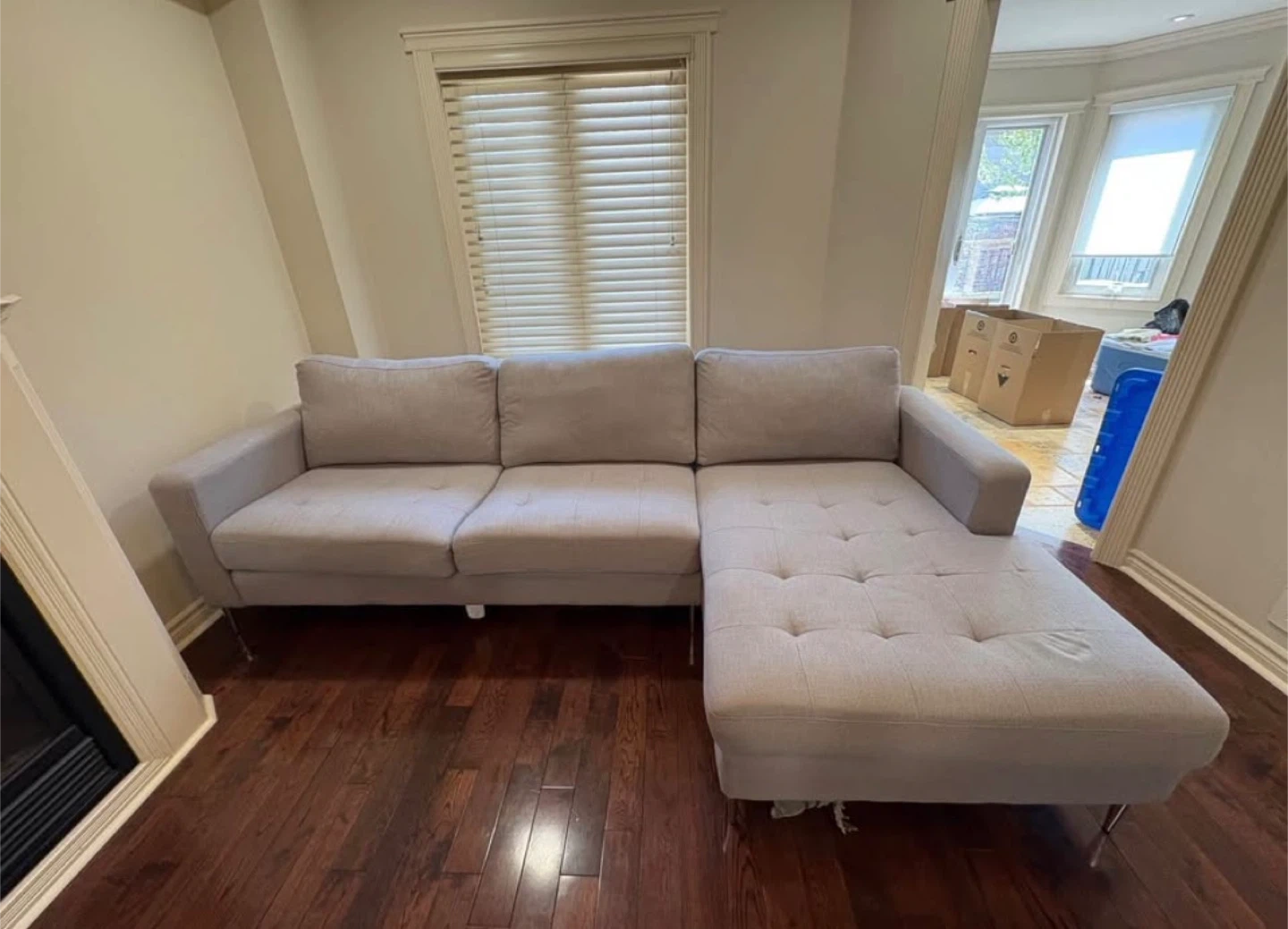 Selling a comfy sectional sofa. It's in great condition and would be perfect for a living room or den. It's a stylish and functional piece of furniture