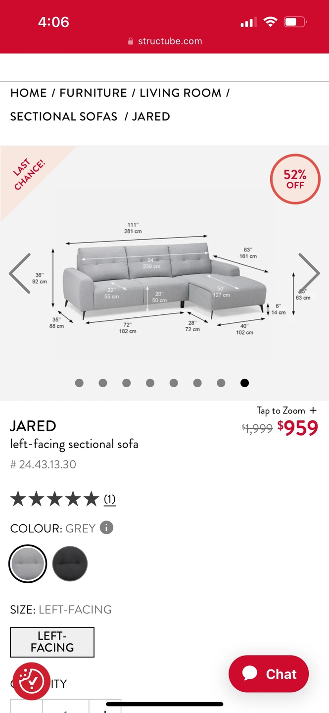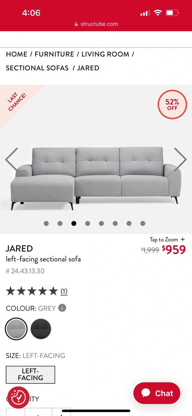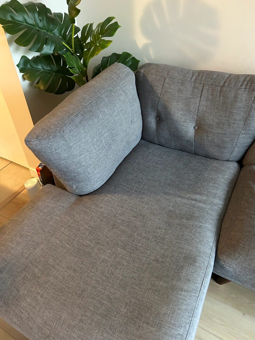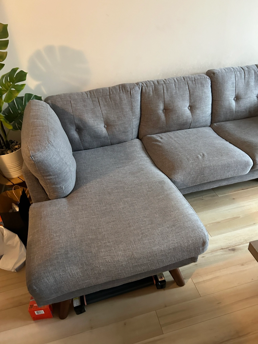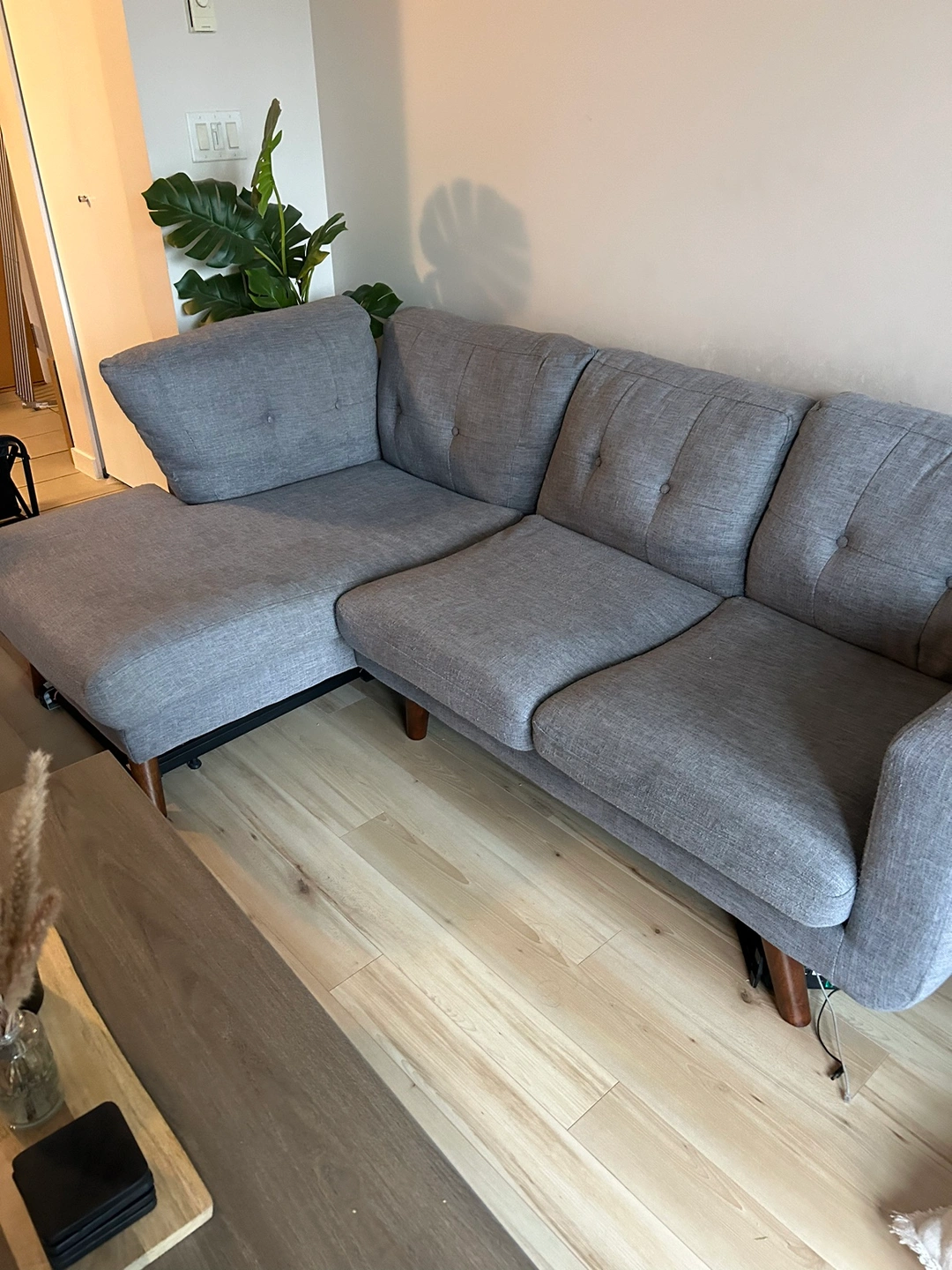 Grey sectional sofa with wooden legs for Structube. Dimensions similar to ones in photo. I’m decent condition and very comfy. Bought in 2020. Pick up and cash only.