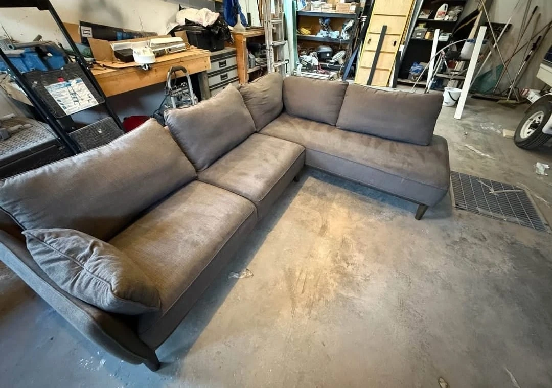 87Selling a grey sectional sofa. It's in good condition and would be perfect for a living room or den