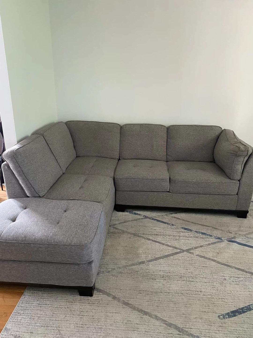 Selling a comfortable grey sectional sofa, Very lightly used! It's in great shape and would be perfect for a living room or family room. The neutral colour will fit in with any decor. Location: Newmarket , Leslie and Davis area