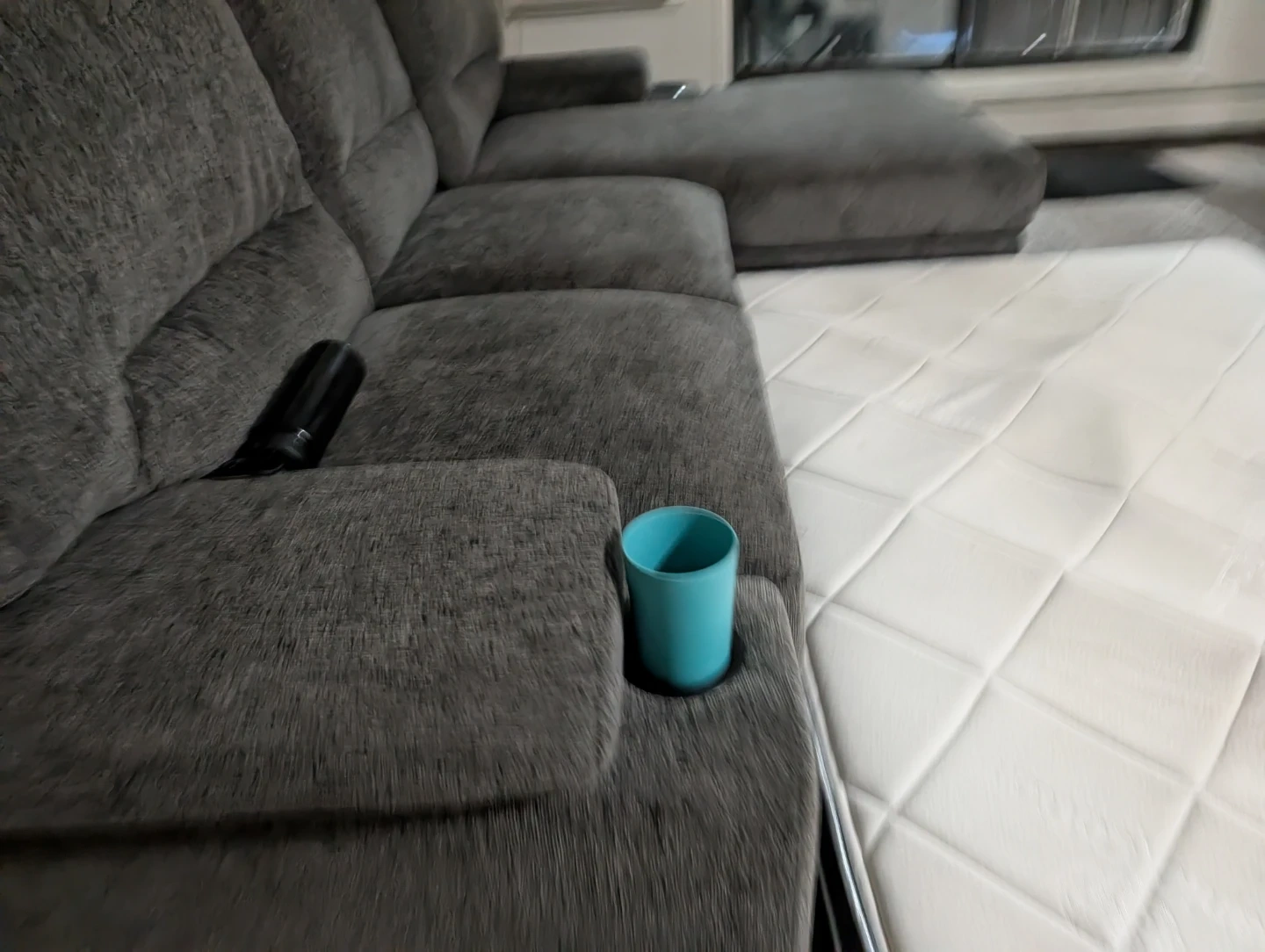 65Selling VEJLBY Interchangeable Sectional Sofa Bed With Storage (Grey) JYSK Bought in August. Barely used. Brand New Condition. Bought it for 1600. Bill of Sale available as well. Selling because I'm moving out of province.It features a chaise lounge for extra relaxation and a built-in cup holder for convenience. Perfect for a living room or family room!