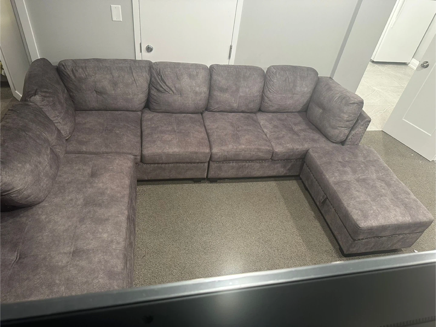 17Selling a comfy grey sectional sofa that comes with an ottoman! It's in great shape and would be perfect for a living room or den. The sectional design allows for flexible arrangement, and the ottoman adds extra seating or a place to kick up your feet after a long day