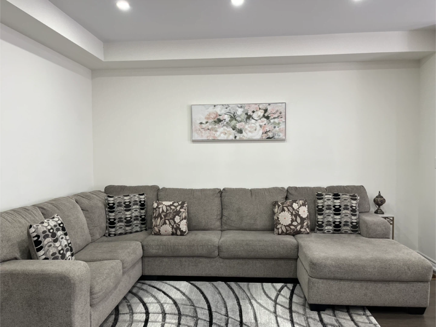 10Selling a comfy grey sectional sofa! It comes with the decorative pillows shown in the pictures. This couch would be perfect for a living room or family room. It's in great condition and ready for a new home!