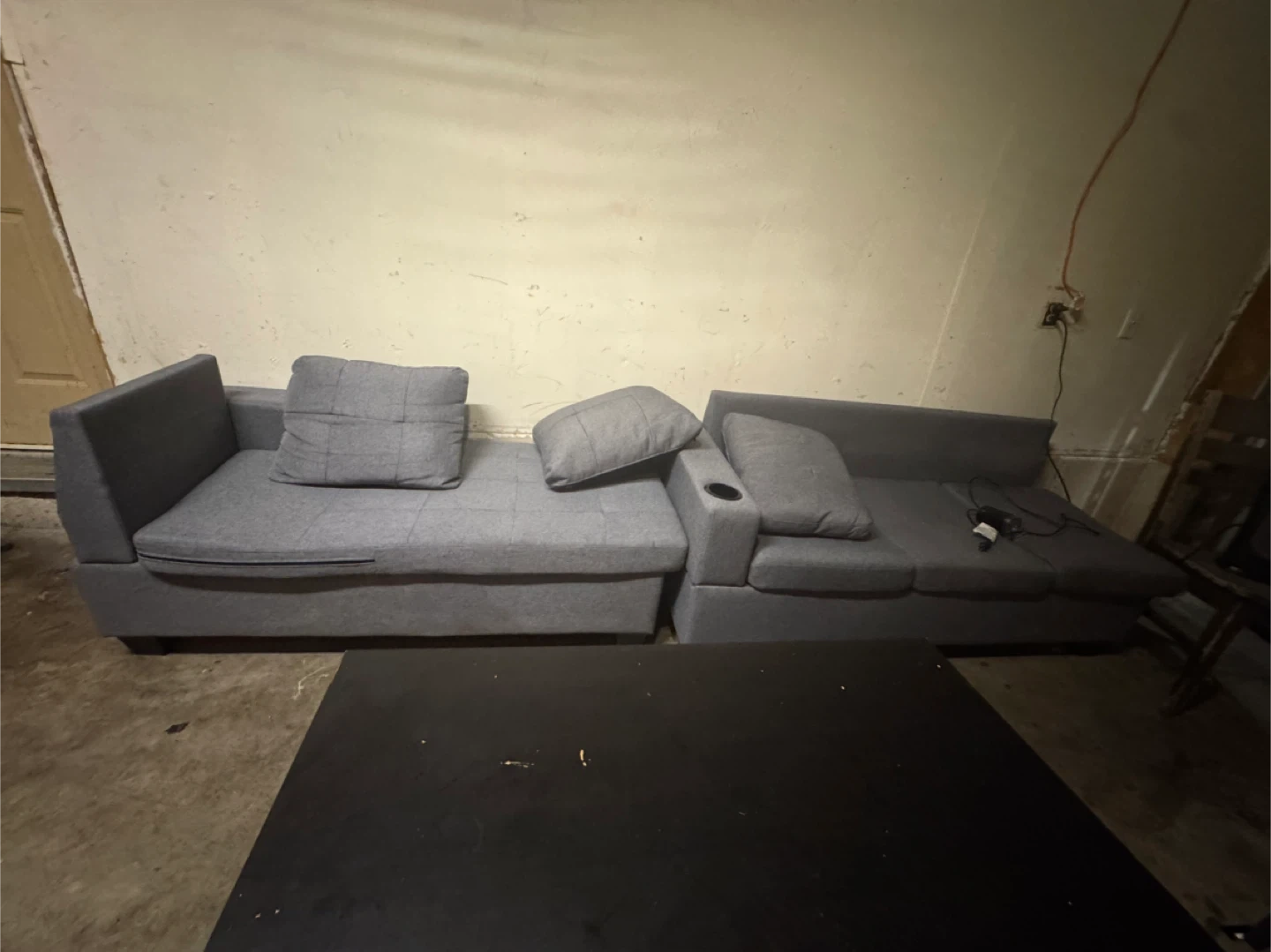 5Selling a comfy grey sectional sofa! It comes with the pillows shown in the picture. It's in good condition and would be perfect for a living room or rec room