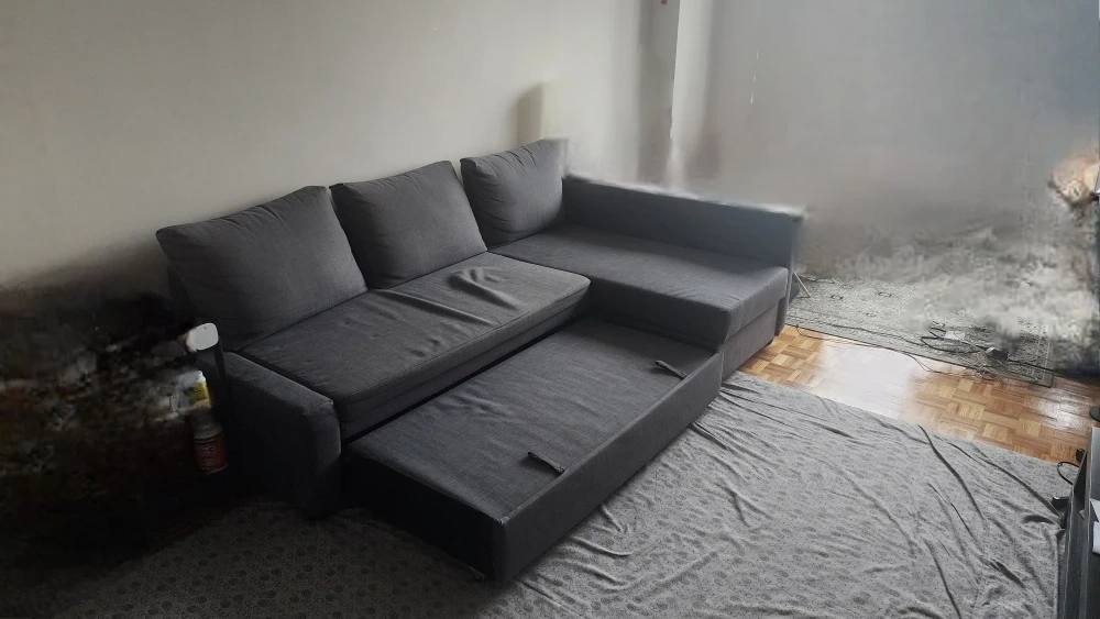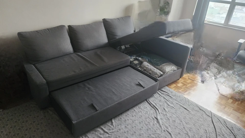 10IKEA FRIHETEN. Selling a comfy grey sectional sofa that features a convenient pull-out bed. It's perfect for guests or for maximizing space in a smaller apartment. The sofa is in great condition and ready for a new home!
