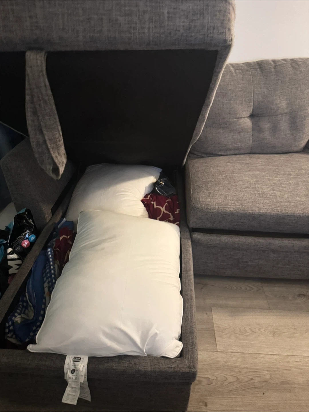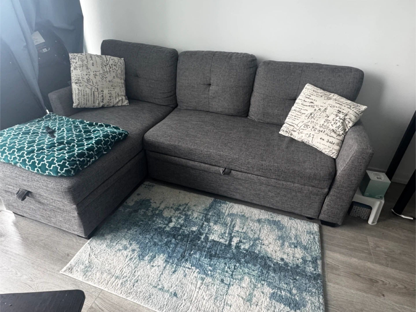 30Selling a comfy grey sectional sofa! features handy storage and pull out bed. Perfect for relaxing or entertaining. Needs re padding. Only pick up. Got it from wayfair search for Nadha 85'' Square Arm Sofa Bed to get specifications, Can be dissembled, ***repadding need to be done, the back cushions are good the seating area doesn’t have much cushioning, I can’t do it, so I’m selling it.