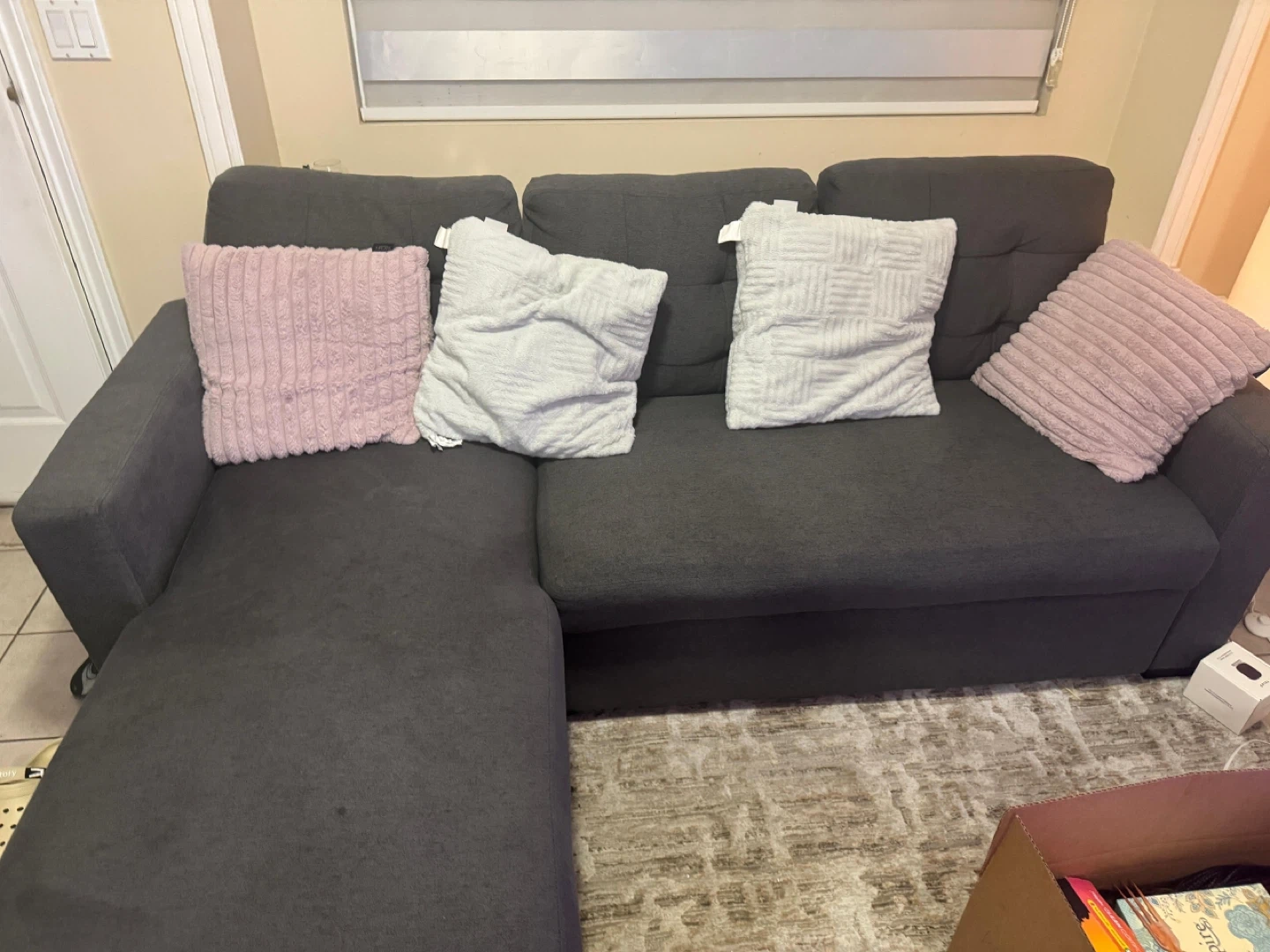 Grey Sectional Sofa with Chaise Lounge & Pullout Bed