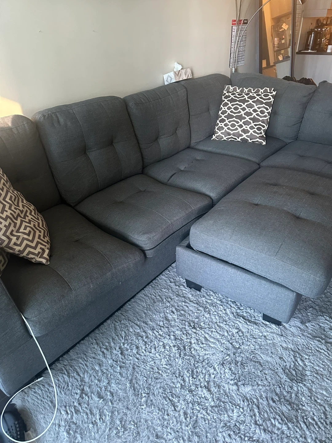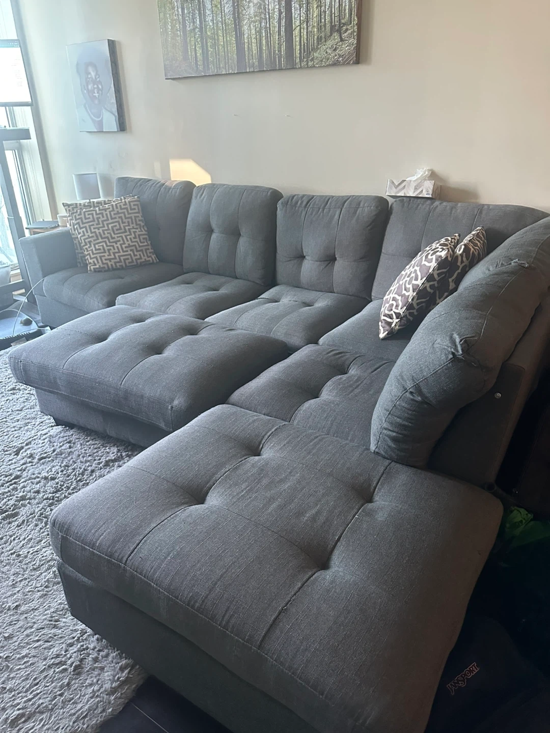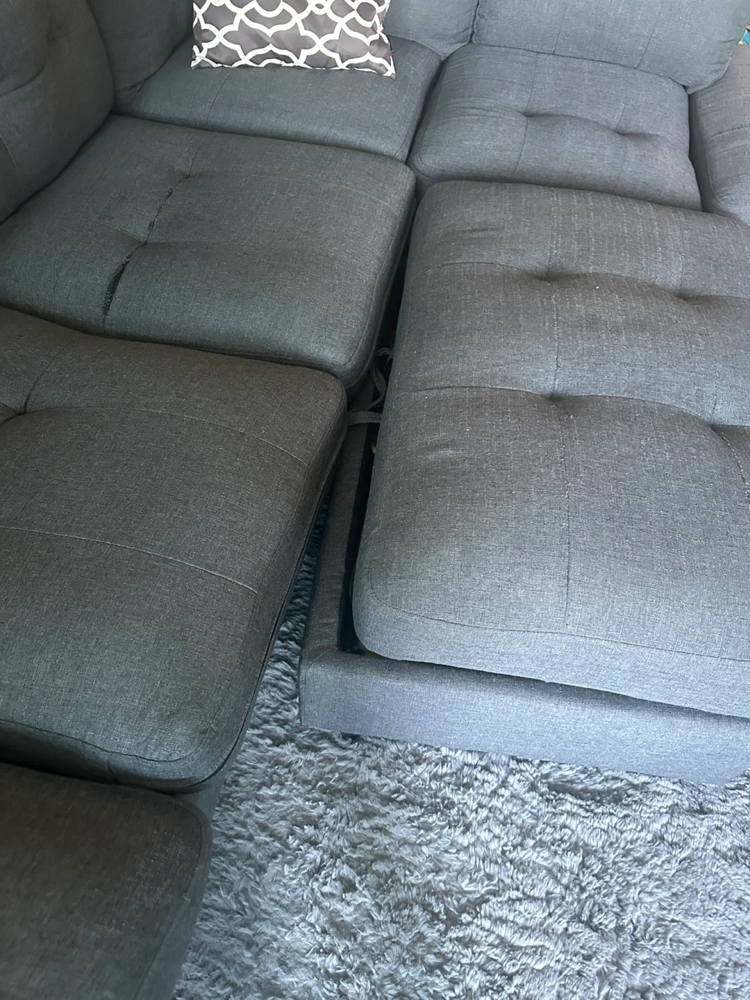 Couch for sale! Purchased for over $2000 a few years back, moving so need to get rid of it. Has a small tear on one of the cushions as shown in one of the pictures. The ottoman doesn’t close properly but can probably be fixed (also shown in picture) Will need a truck, pick up at Islington & Queensway Asking $300 OBO