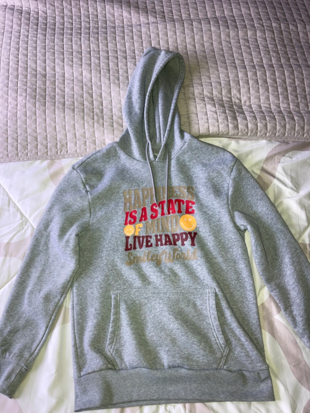 31Grey pullover hoodie. Features a graphic print on the front. Drawstring hood. Long sleeves. Soft material. Great for casual wear. Size small