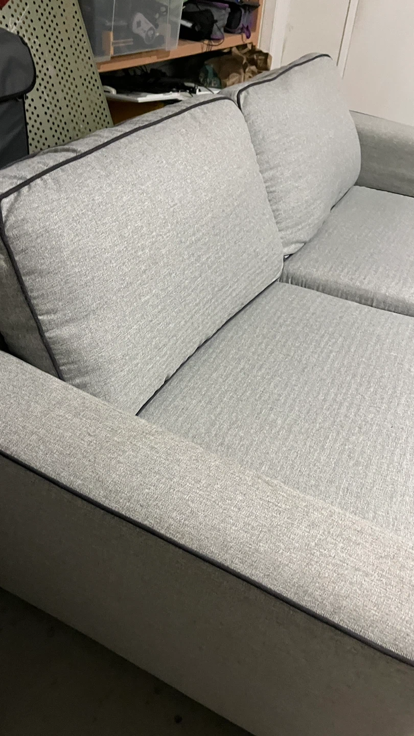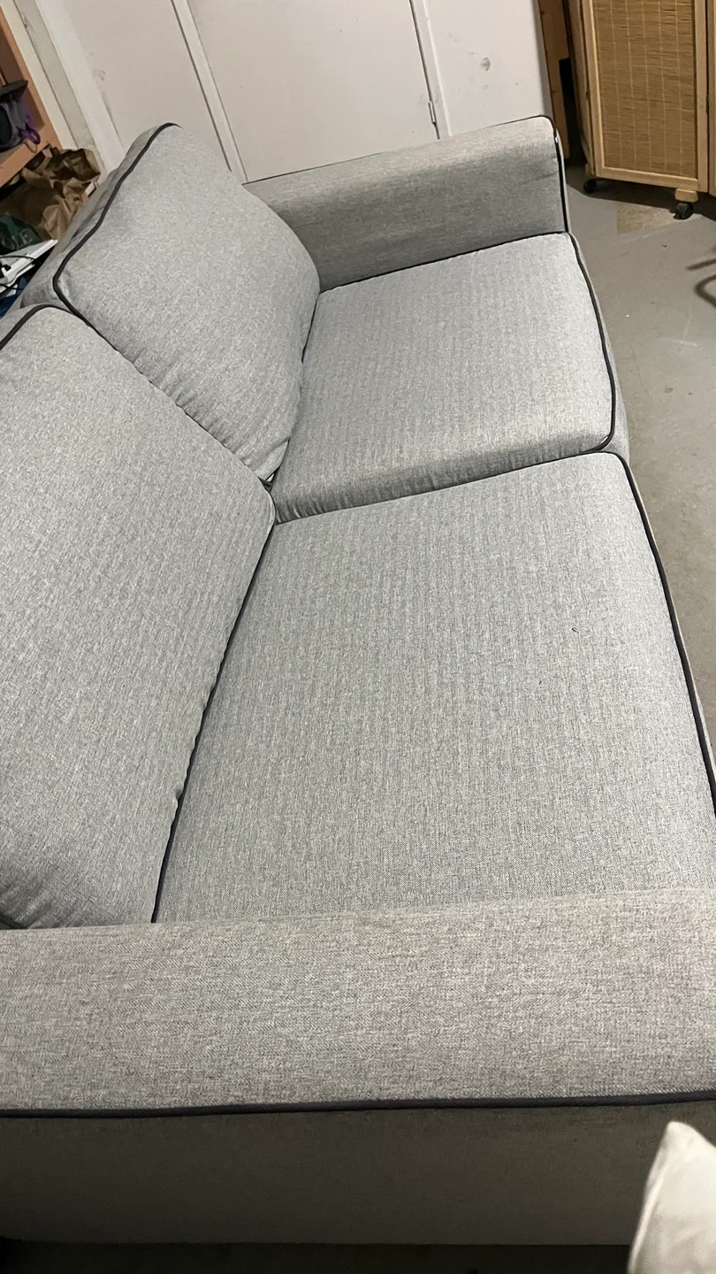 65Selling a comfy grey sofa. It's in good condition and would be perfect for a living room or den. The cushions are in good shape and the fabric is clean. Covers are washable Pick up near Metrotown