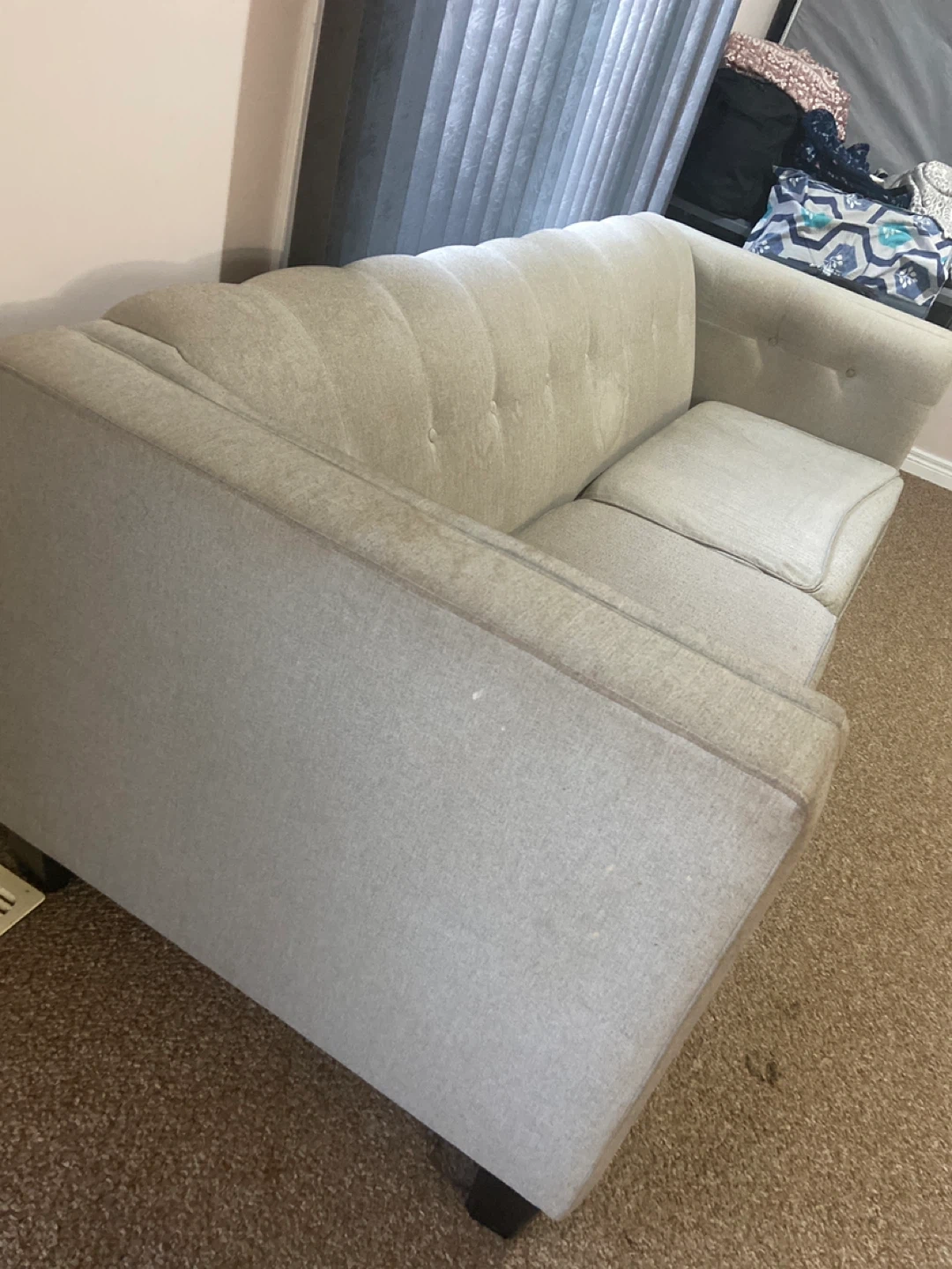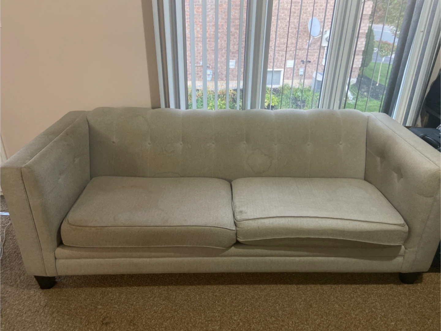 Selling a comfy neutral-coloured sofa. It's in good condition and would be a great addition to any living room or den! Please take a look at the pictures and let me know if you have any questions