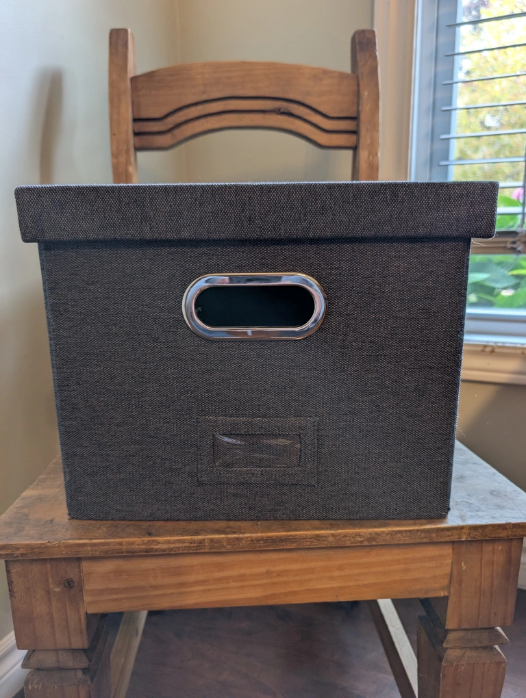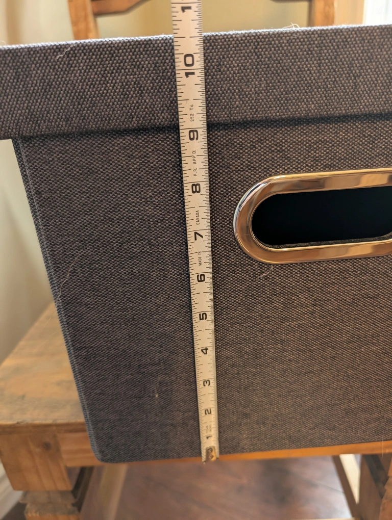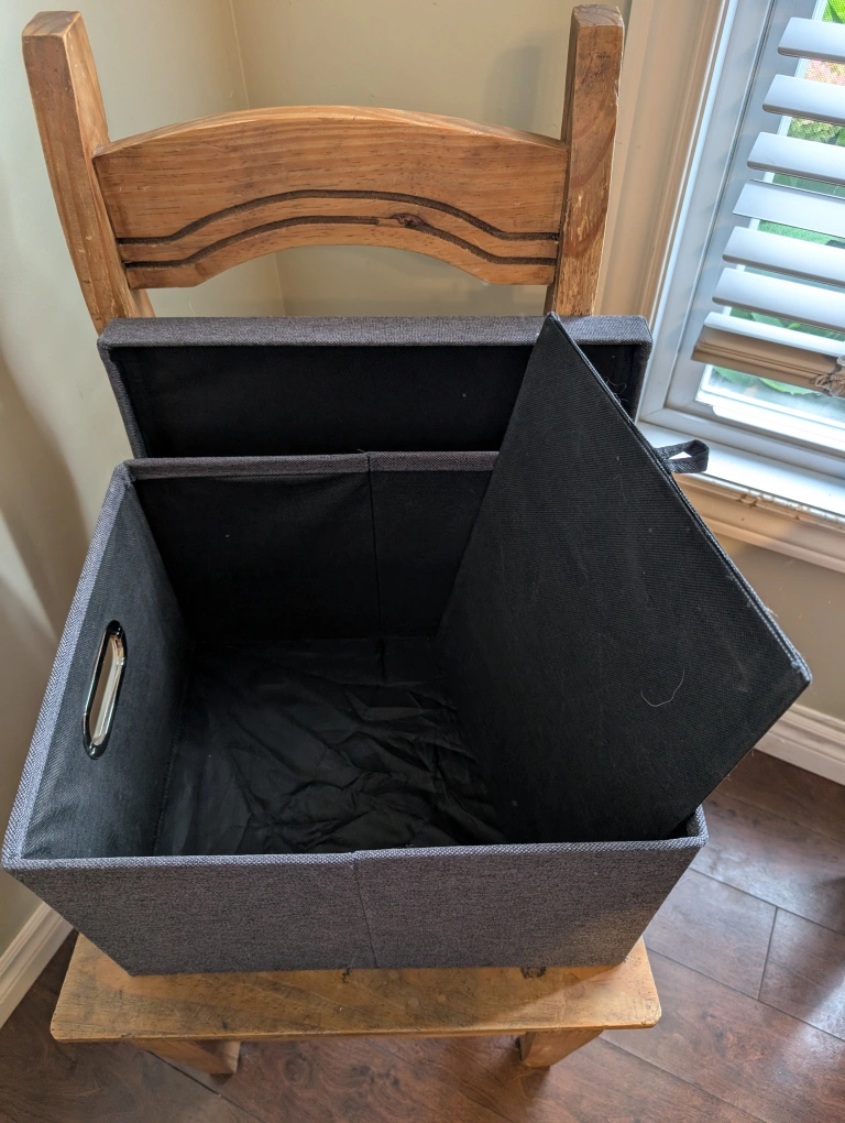 65Selling a sturdy fabric grey storage box with a lid! It's in great shape and ready to help you organize. Dimensions: - Approximately 11 inches wide - Approximately 10 inches tall