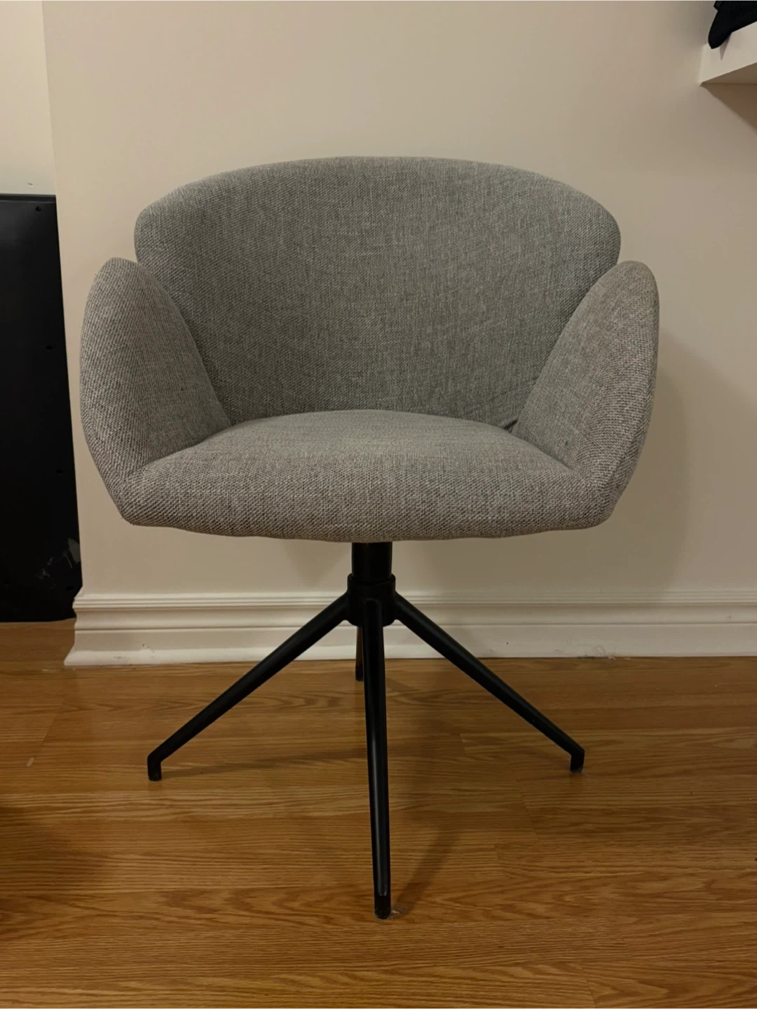 10Must Societe Monika Swivel Chair in Grey with Black Base Retails for $299.00 Height : 31'' (79 cm) Width : 23.5'' (60 cm) Depth : 23.5'' (60 cm) Seat height : 19'' (48 cm) Seat depth : 17.5'' (44 cm) Near perfect condition Professionally cleaned