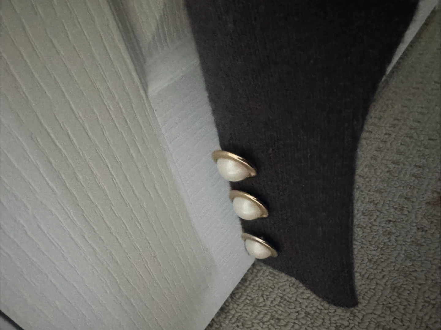 Grey Turtleneck Sweater with Pearl Buttons