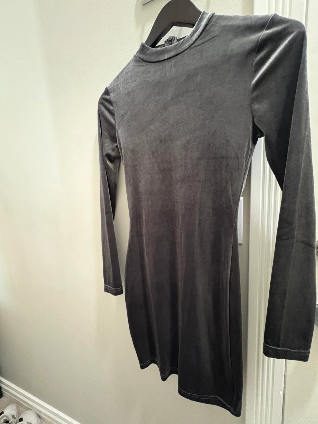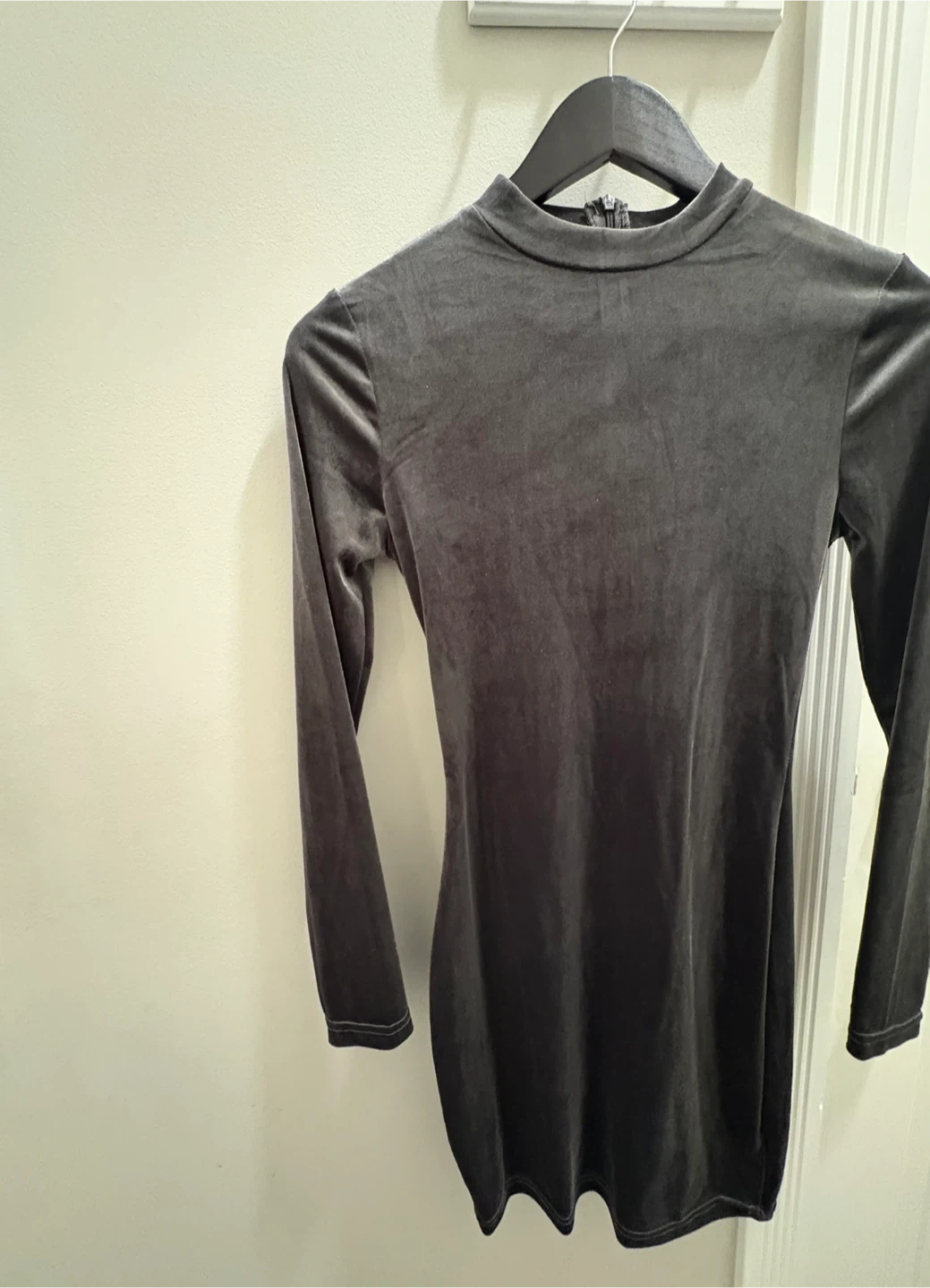 Selling a cute grey velvet long sleeve dress! It's in great condition and ready for a new home. It has a zipper in the back. Size S