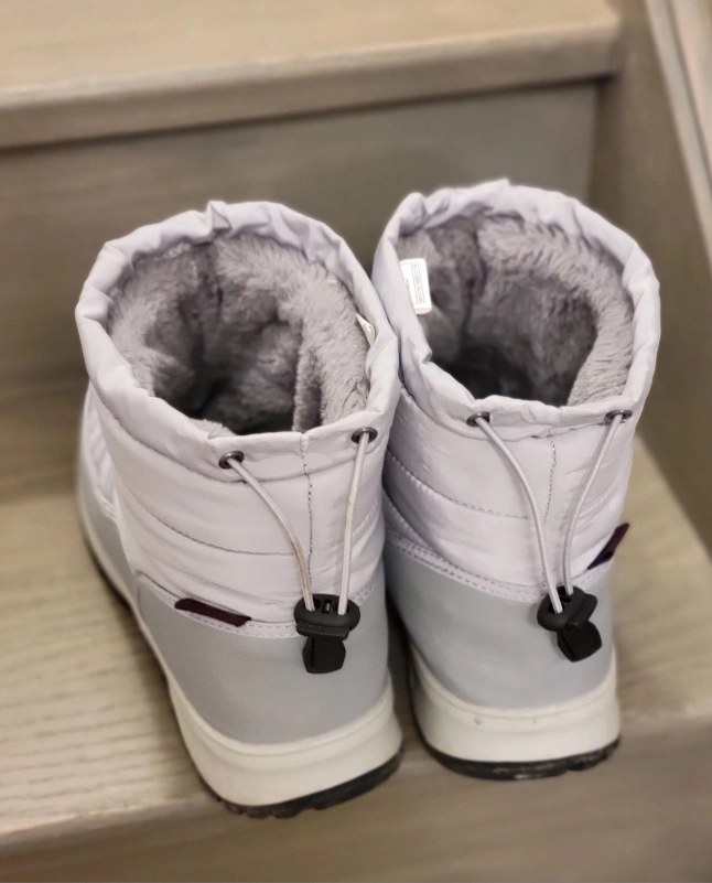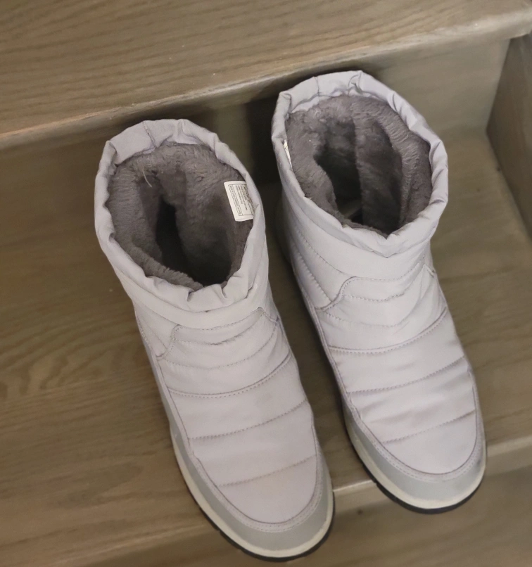 65Cozy grey winter boots, perfect for keeping your feet warm and dry! They have a soft, plush lining and a durable sole for traction in snowy conditions. These boots are in great shape and ready for the cold weather.