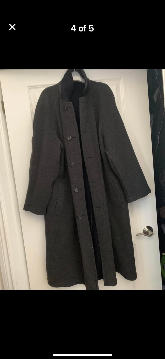 Selling a grey wool blend overcoat. It's in great condition and perfect for the colder weather. It's a stylish and warm addition to any wardrobe!