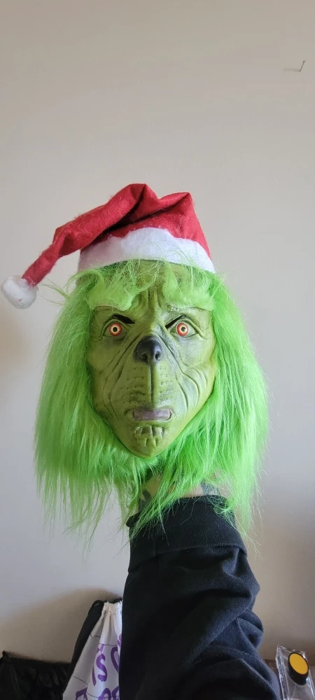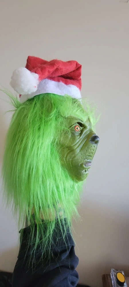310Selling a Grinch mask complete with a Santa hat! It's perfect for some holiday fun or a costume party. The mask is in great shape and ready for a new owner. Barely used.