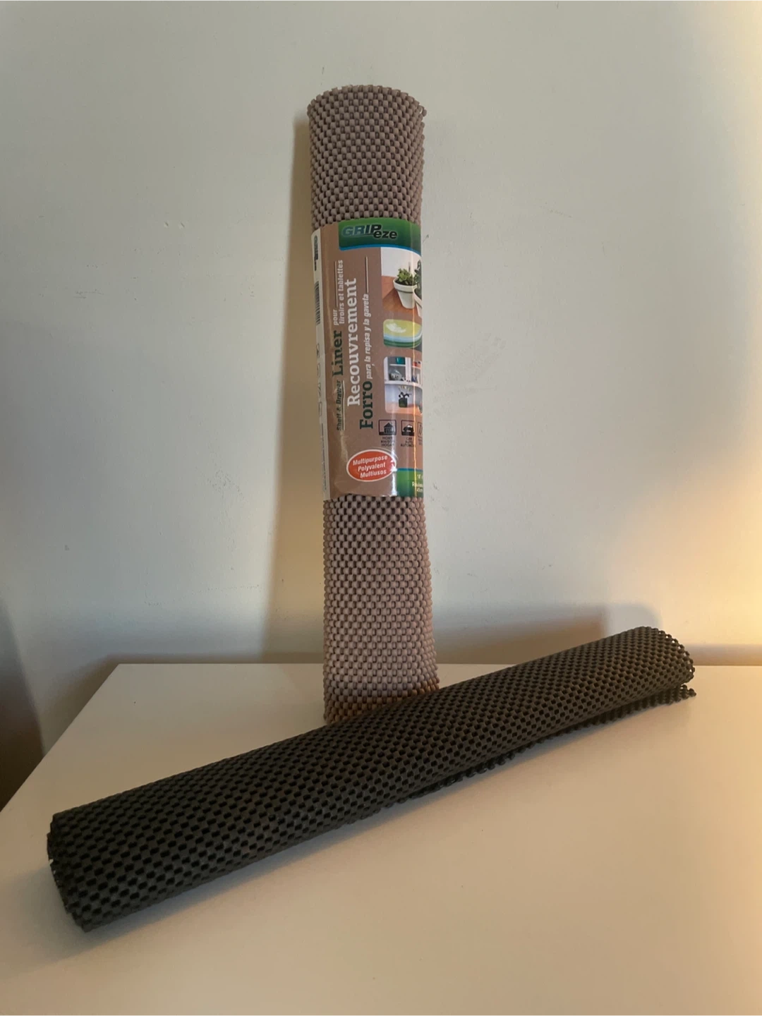 Selling a roll of GRILLZE shelf and drawer liner. It's multipurpose and great for the home, car, garage, or boat! Dimensions are 18 inches x 50 inches (45cm x 125cm). New, still in packaging. Plus an extra black liner, approx. 18 x 20 inches.