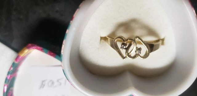 For sell we have this Dainty 2 Heart 2 Diamond 10kt Gold Ring Size 6.5 - 7 in like new condition asking $150 pick up on beaverbrook lane kanata thank you