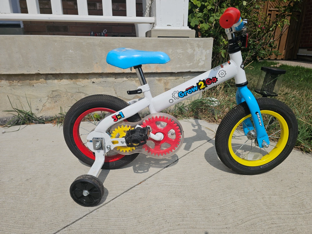 12Selling a Grow2Go 3-in-1 kids bike! It's in great shape and ready for a new rider. This bike is designed to grow with your child, offering three different modes to help them learn to ride. It's a fun and colourful way to get your little one active and develop their balance and coordination