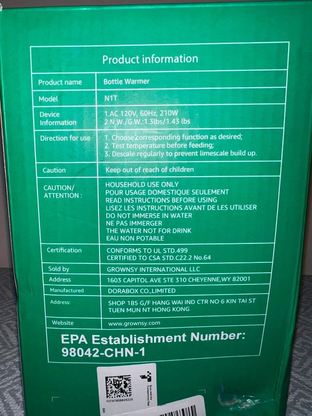 15Bottle Warmer, GROWNSY 8-in-1 Fast Baby Bottle Warmer with Timer LCD Display Accurate Temperature Control for Breastmilk or Formula. Brand new. The box is a little beat up, but the product is unused, inside the original packaging.