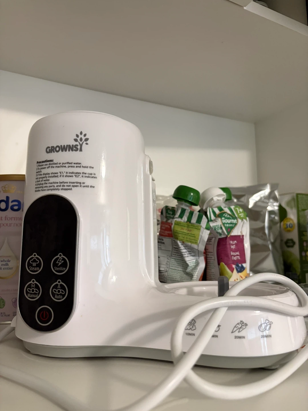 65Gently used and in great working condition. All parts and accessories are included. The blending jar has a slight orange tint from sweet potatoes, but it’s fully clean and works perfectly. Perfect for making fresh and healthy baby meals at home!