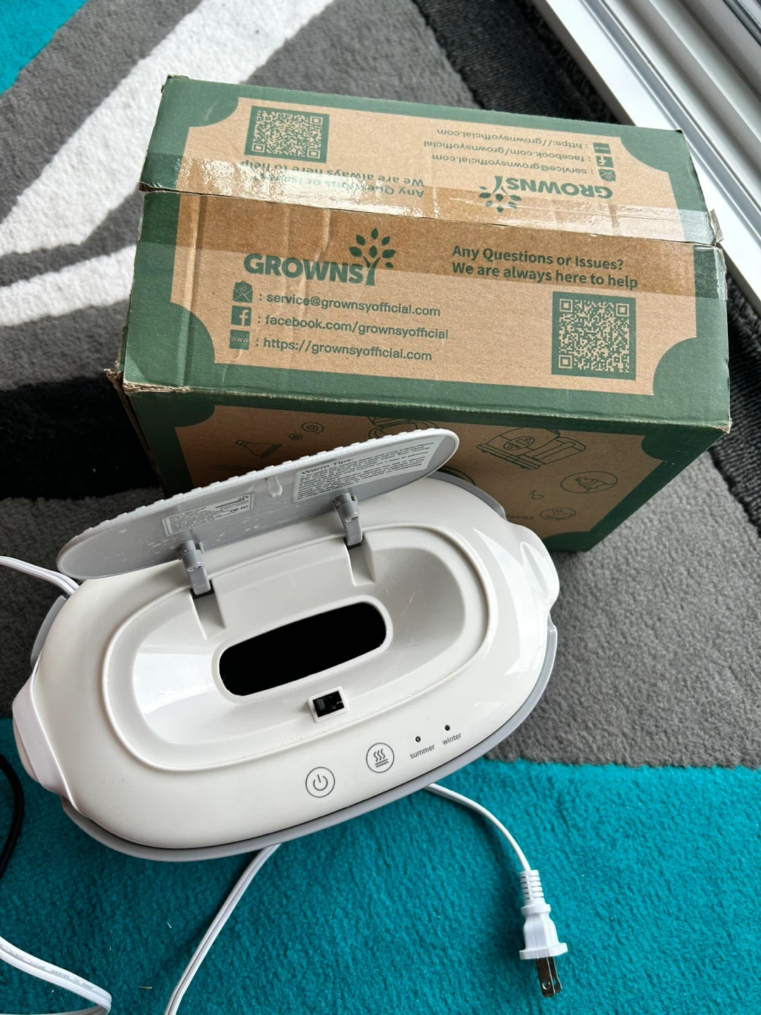 Selling a Grownsy baby wipes warmer. It comes with the original box. It's perfect for warming wipes quickly and safely for your little one! Warm comfort for your little one! Used only for 5days. Didn’t required much so it’s not in use.