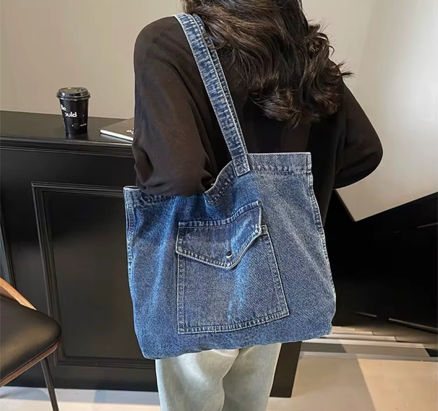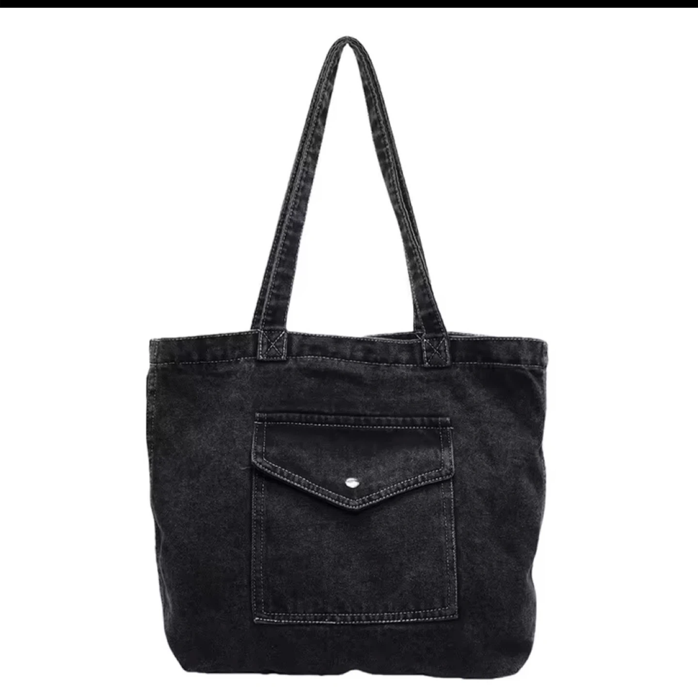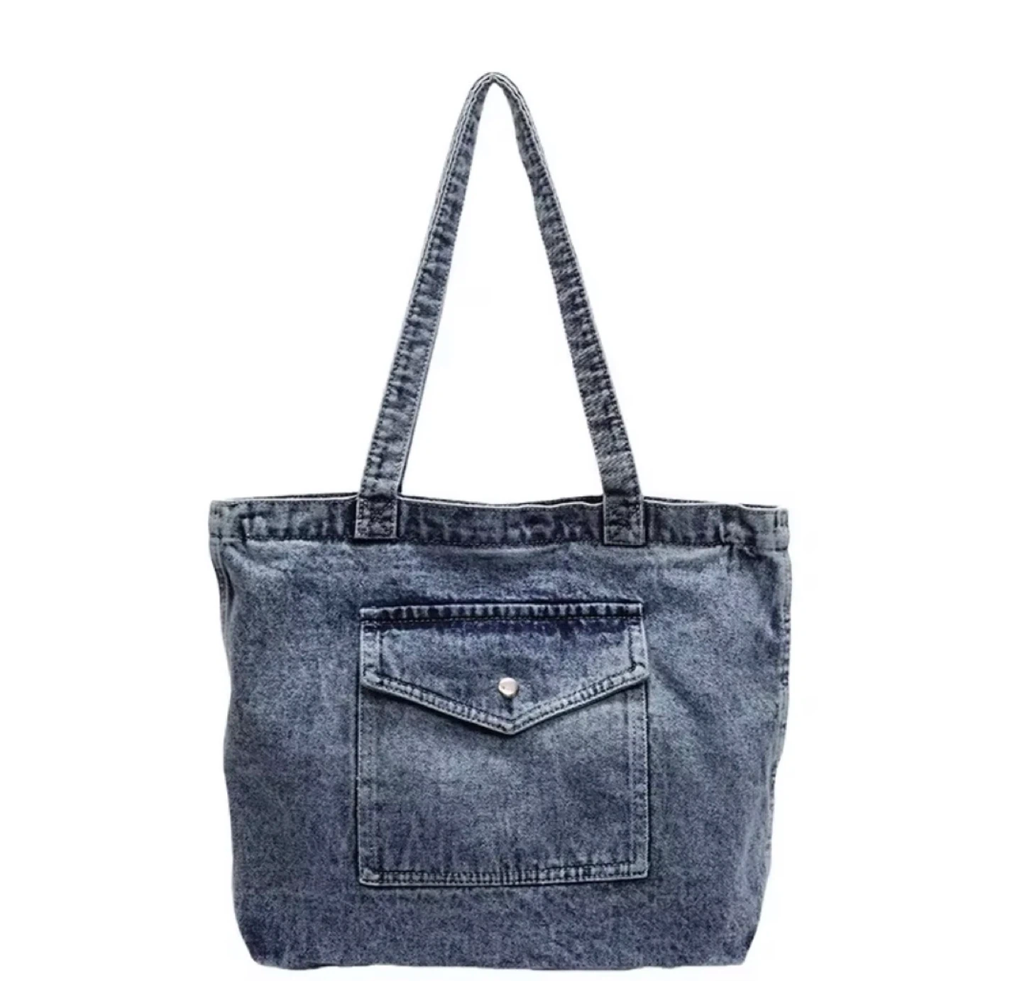 Denim Tote Bag with Front Pocket