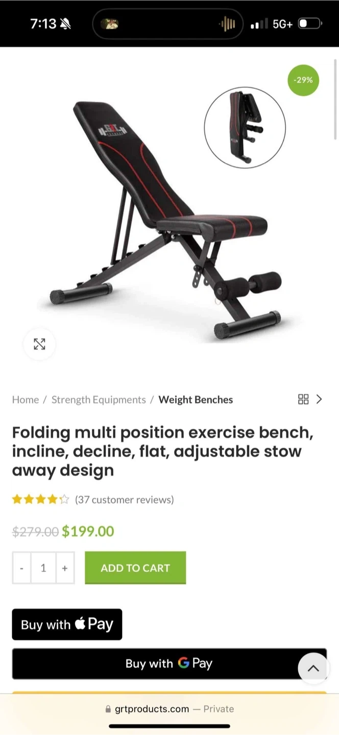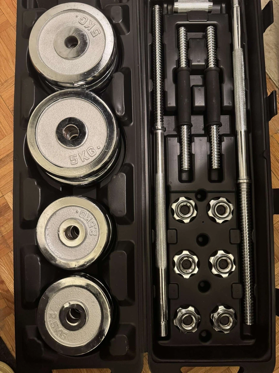 Get ready to level up your home gym! I'm selling a folding multi-position exercise bench from GRT Fitness. It can incline, decline, and lay flat, plus it's adjustable and stows away easily. Also included is a 50kg chrome dumbbell set with an extension bar. Perfect for a full body workout!