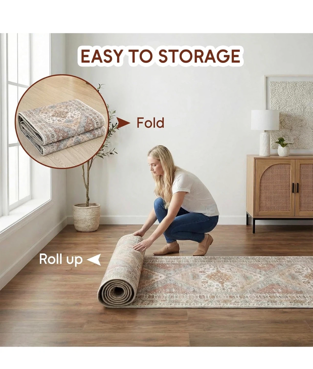 This vintage-style runner rug measures 2'11" x 10'. It's machine washable and features a non-slip backing. The low pile design makes it easy to clean with a vacuum or spot cleaner.