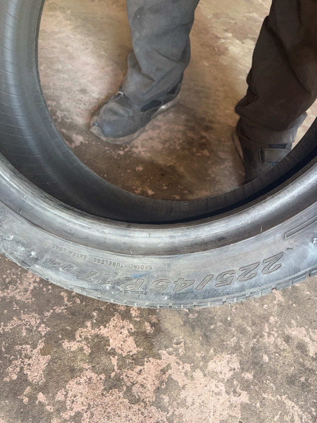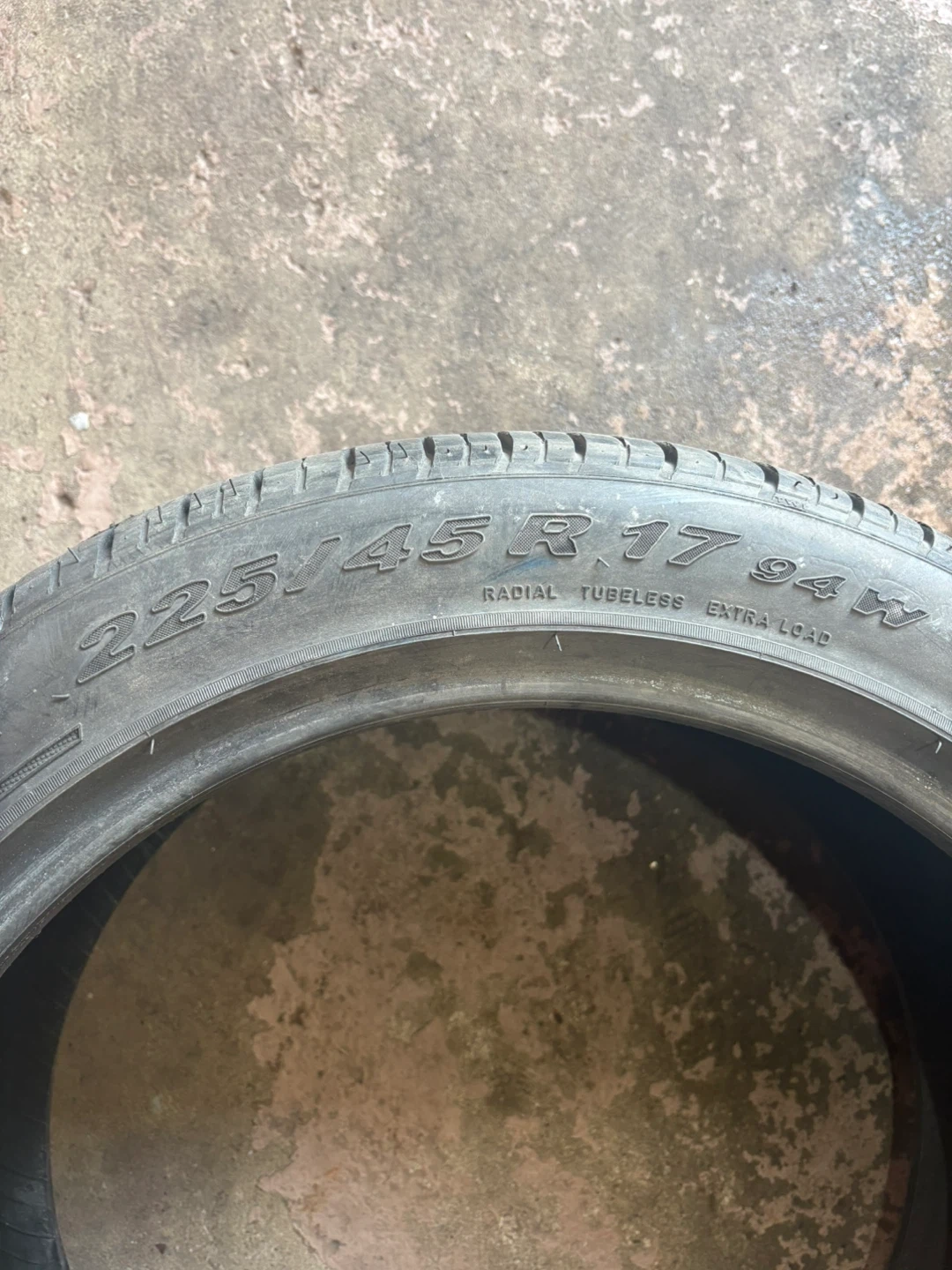 Set of four Pirelli tires. Size 225/45R17 94W. Radial, tubeless, extra load. Manufactured in the 17th week of 2004.