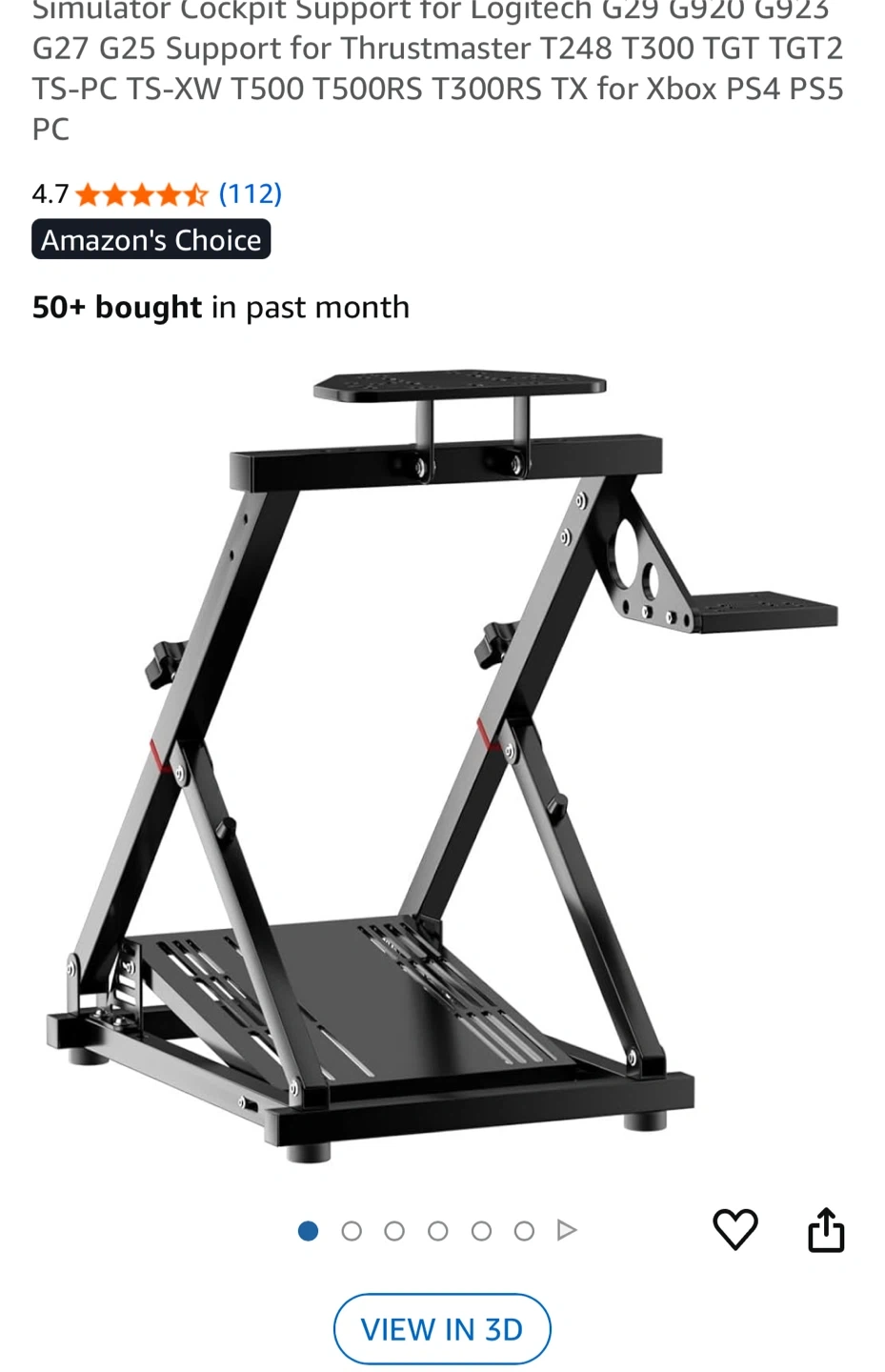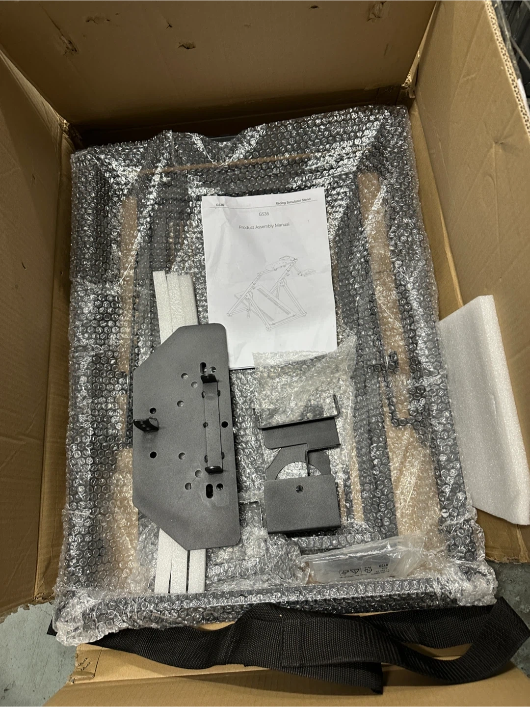 20Selling a GS36 Racing Simulator Stand. It's compatible with Logitech G920, G923, G27, G25, and Thrustmaster T248, T300, T500, and TX racing wheels, as well as Xbox, PS4, PS5, and PC. It is in excellent condition and includes the product assembly manual and all components in the original box