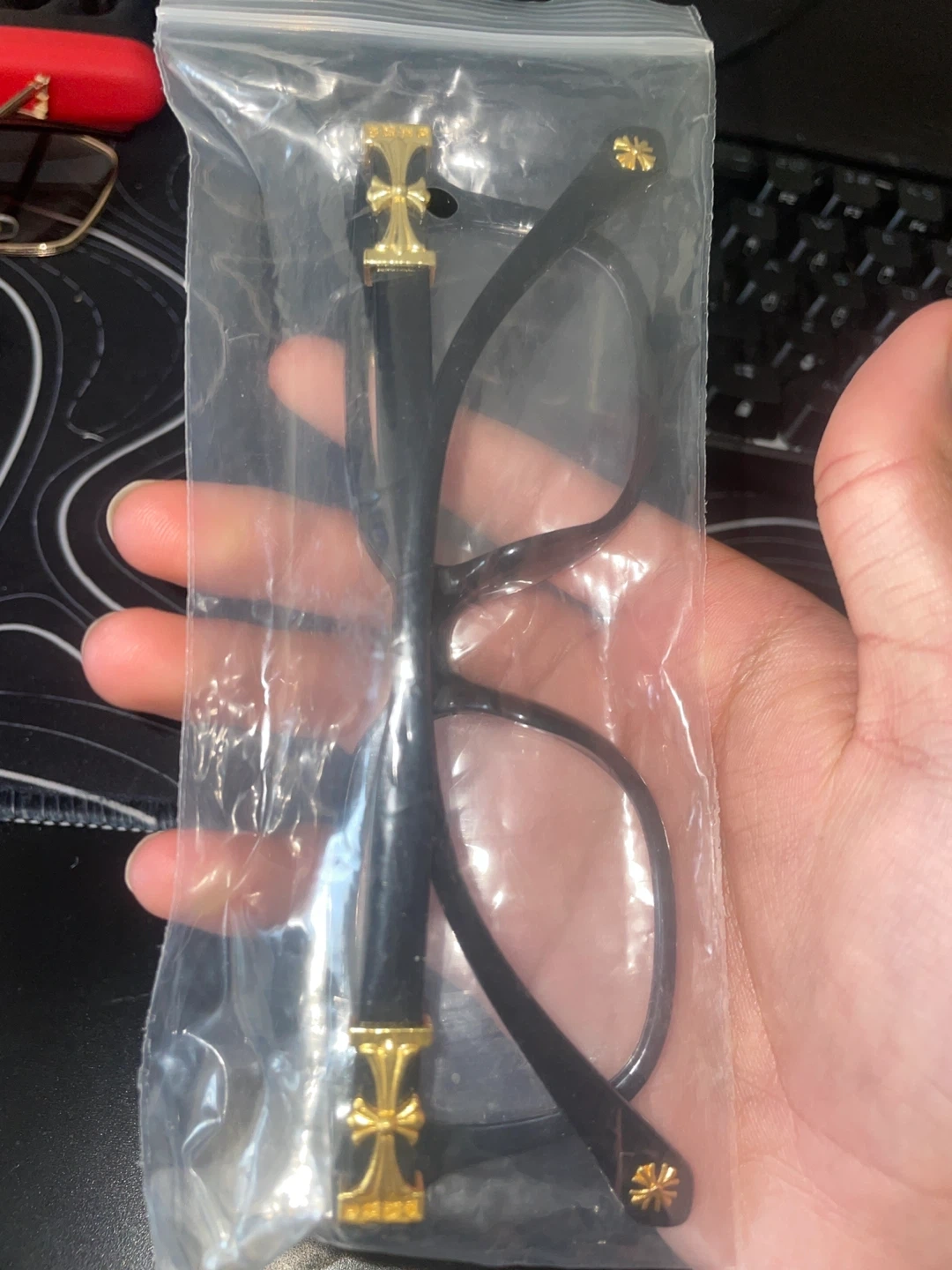 Brand new Chrome Hearts glasses still in the original packaging. These stylish frames feature the iconic Chrome Hearts cross design.