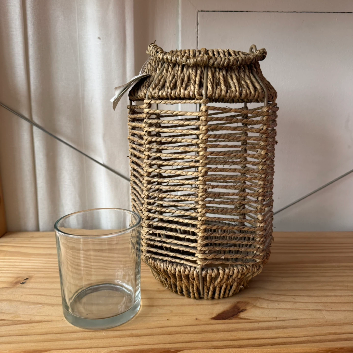 Woven Lantern with Glass Insert