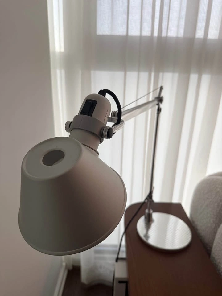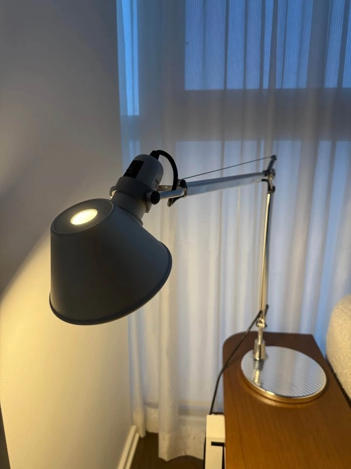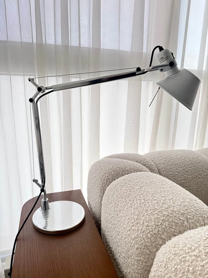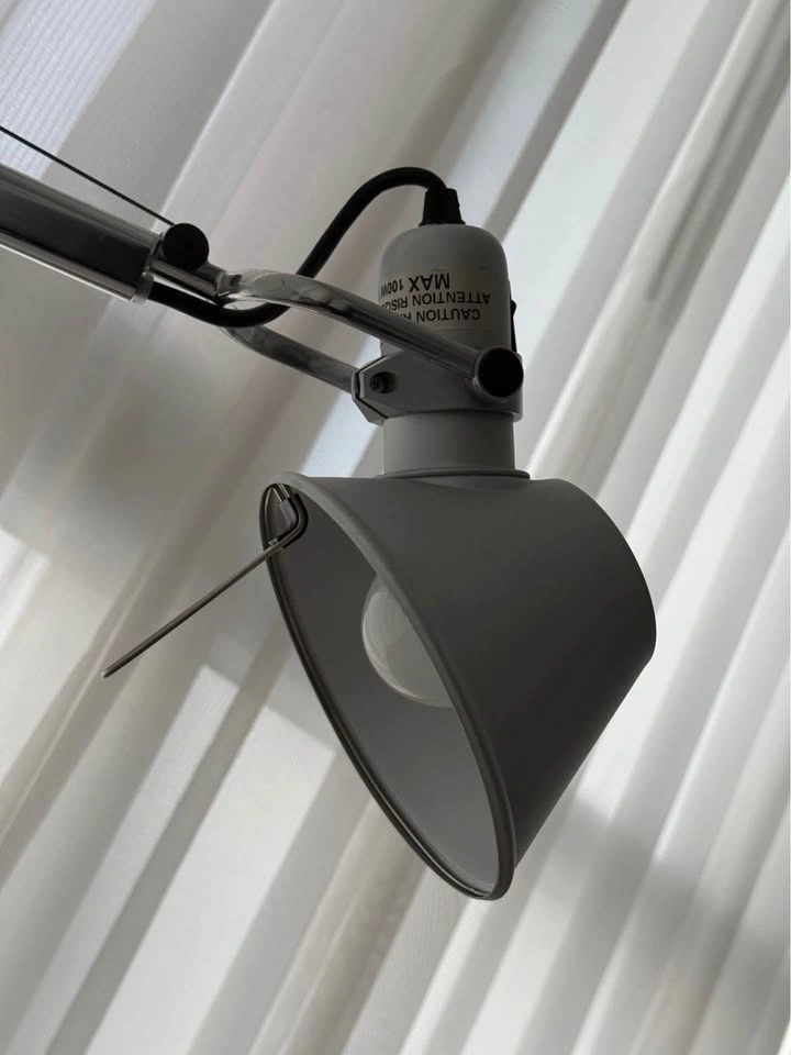 Sleek Artemide Tolomeo Mini table lamp with an aluminum finish. Features an adjustable arm, making it super versatile for any space. The light works great, no issues. AAA+ condition. Authentic Artemide. LED light bulb included. Designer: Michele De Lucchi, Giancarlo Fassina. Dimensions: Height 21.25 in, Length 26.77 in. Max Extension Height: 43.51 in, Max Extension Length: 40.15 in. Pickup downtown Toronto.