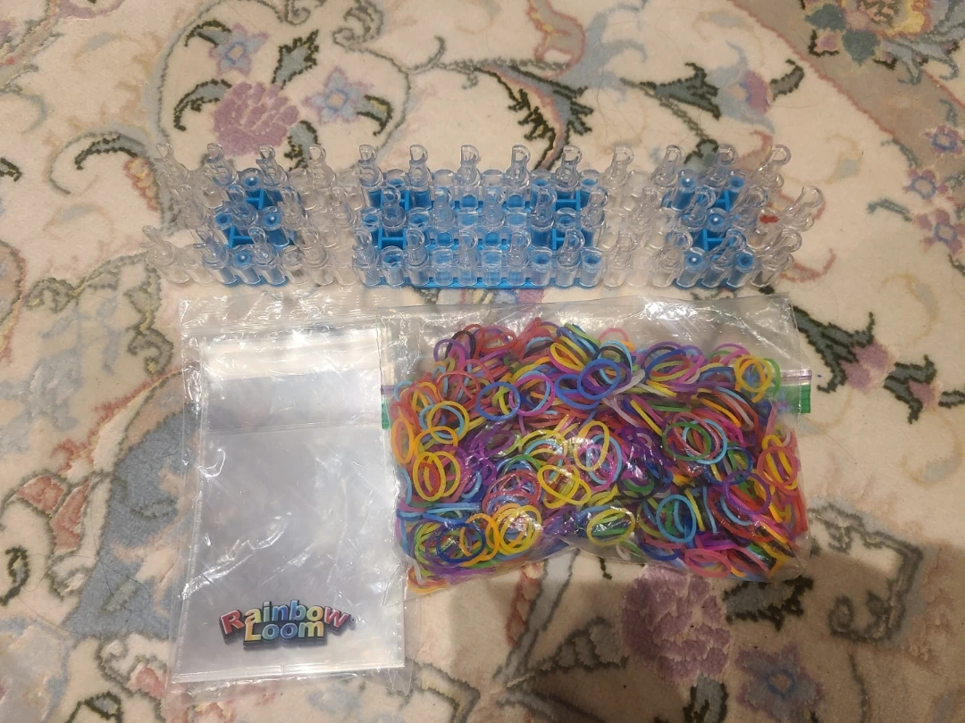 This comes with colorful elastics, a tool to help grow the bracelet, plastic bags to store your creation, and clips to secure the bracelet!