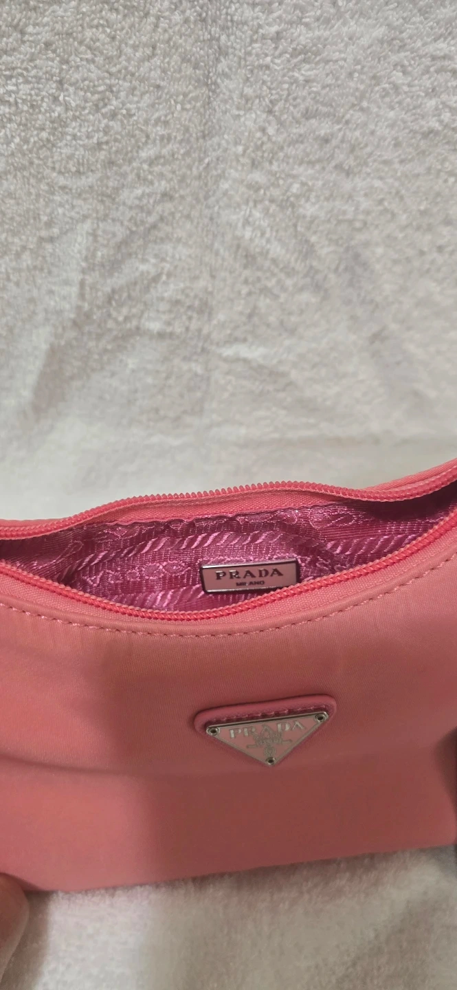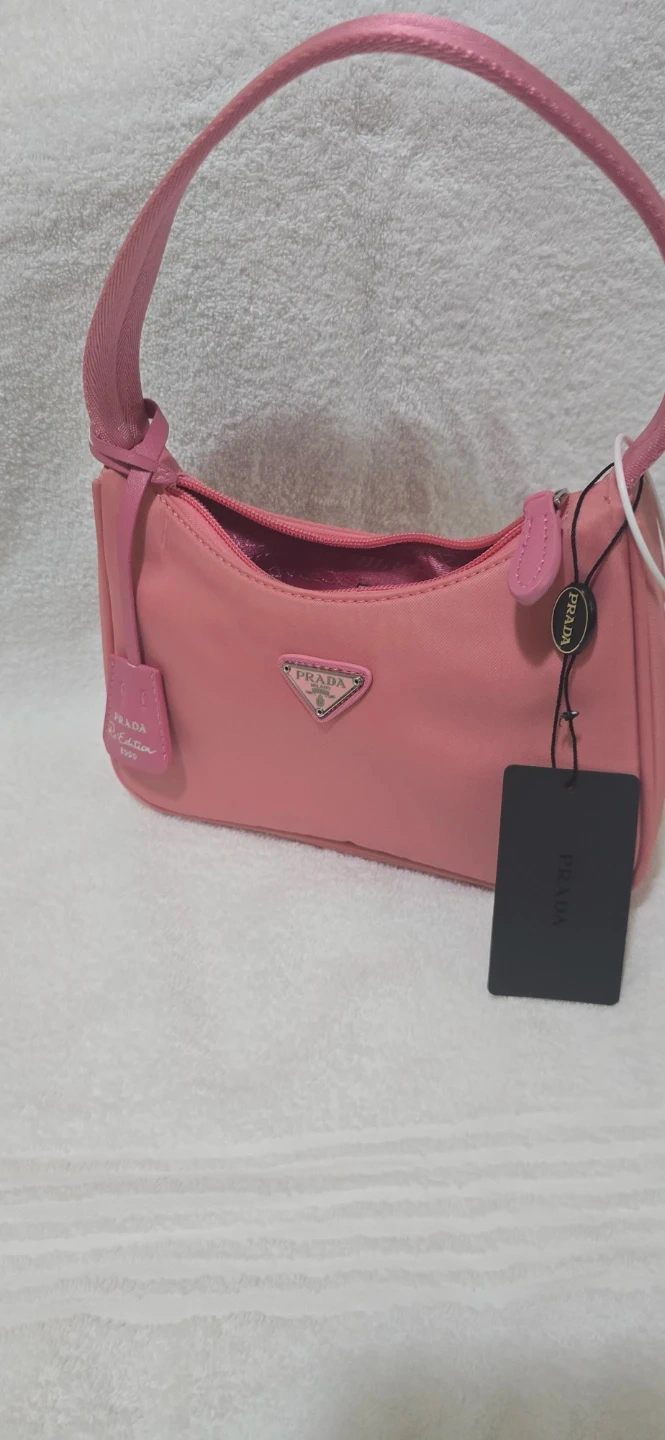 Chic pink Prada shoulder bag made from nylon. Features a zippered closure and a single strap. Includes original tags.