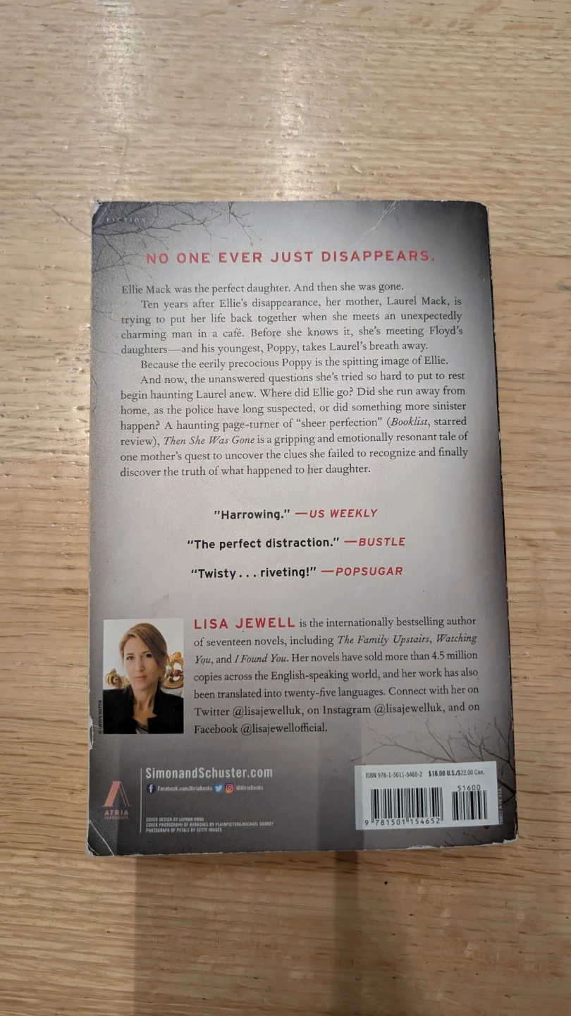 This is Lisa Jewell's "Then She Was Gone," a New York Times bestselling novel. It's a gripping mystery about a mother's quest to find her daughter. This book is categorized as a thriller and suspense novel.