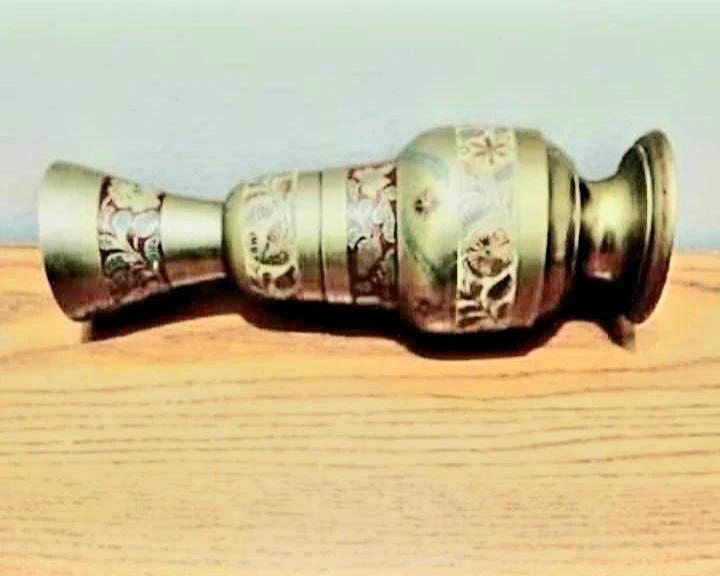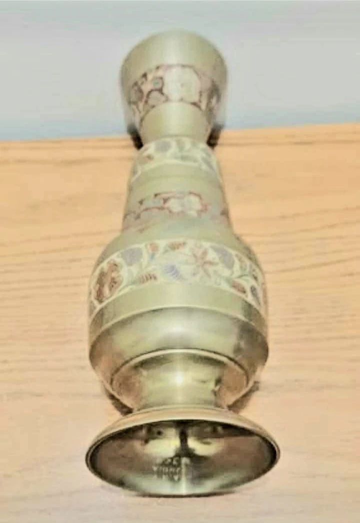 Vtg Boho Hand Painted Etched Brass Vase