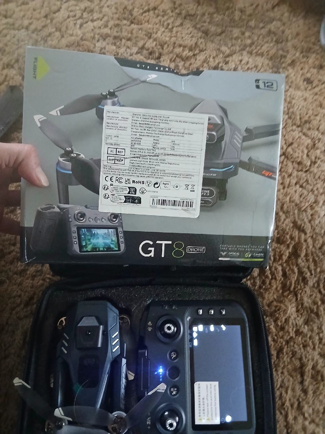146Selling a GT8 drone, comes with its case and accessories! it's in great condition and ready for some flying adventures. Included is the drone, remote controller, and what looks like extra parts and instructions. Perfect for anyone interested in drones