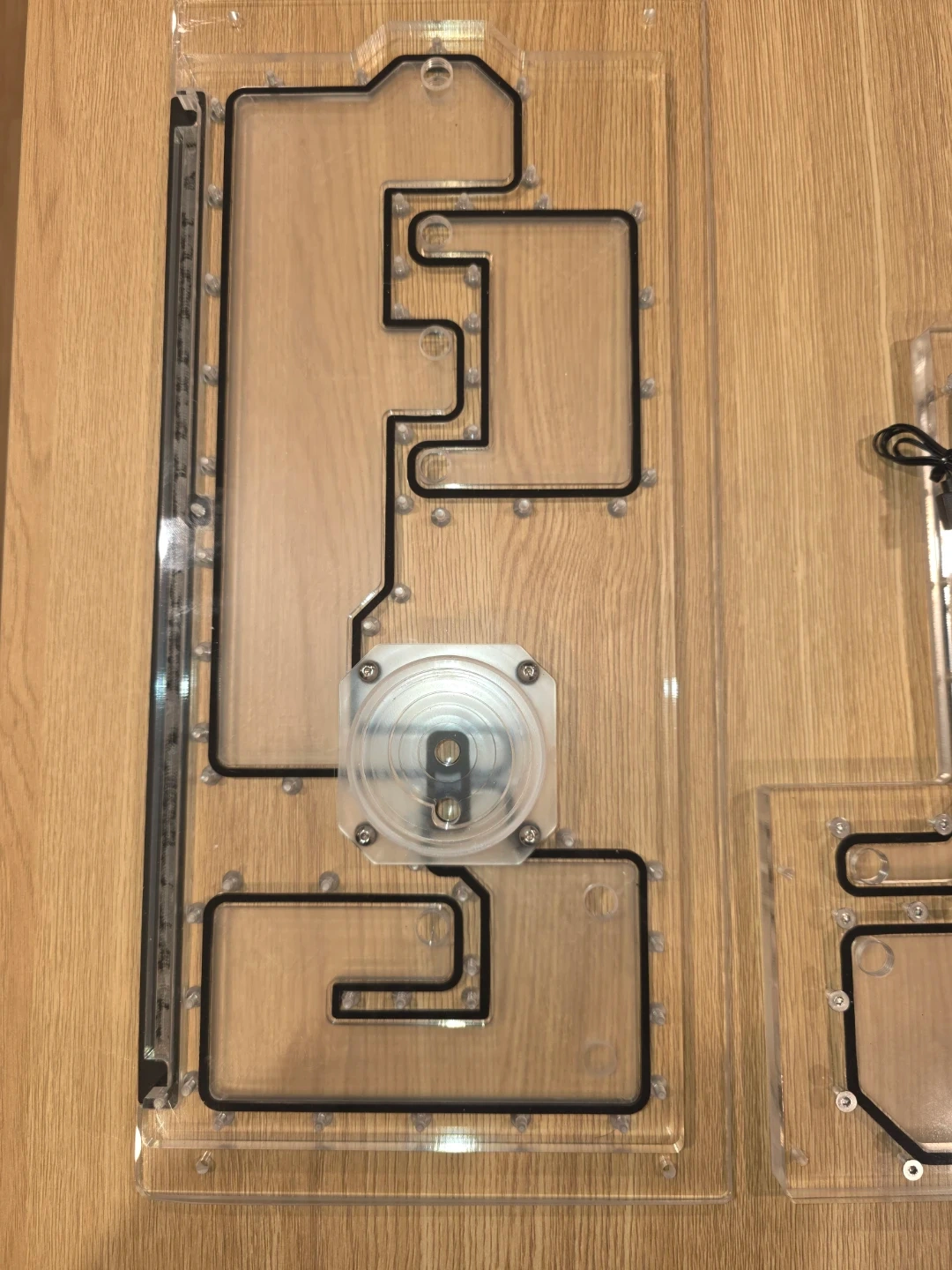 This is a custom PC water cooling reservoir distribution plate. It's made of clear acrylic.