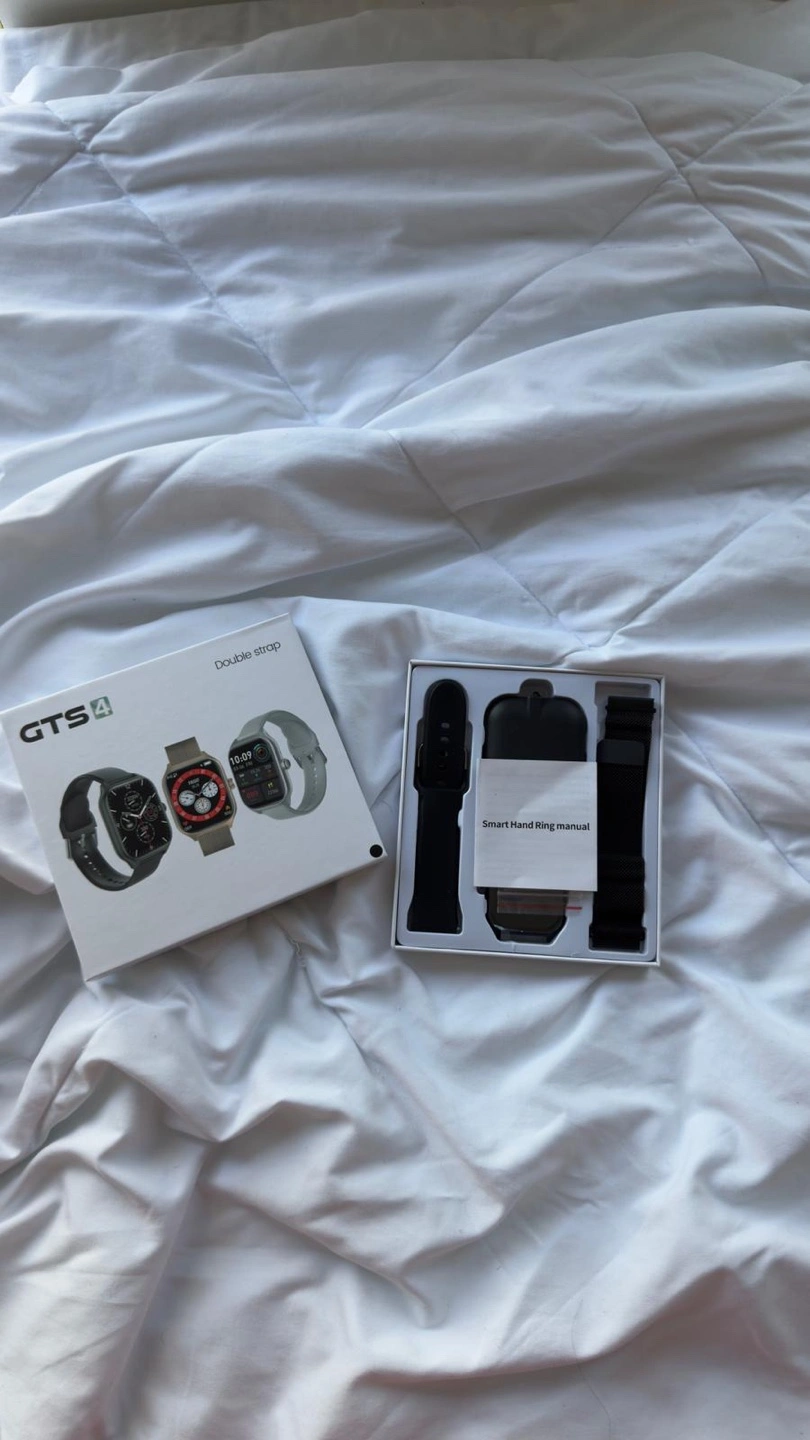 73Selling a GTS 4 smartwatch in excellent condition! It comes with a double strap and all original components, including the Smart Hand Ring manual. The box is included as well, so it's perfect as a gift or for yourself!