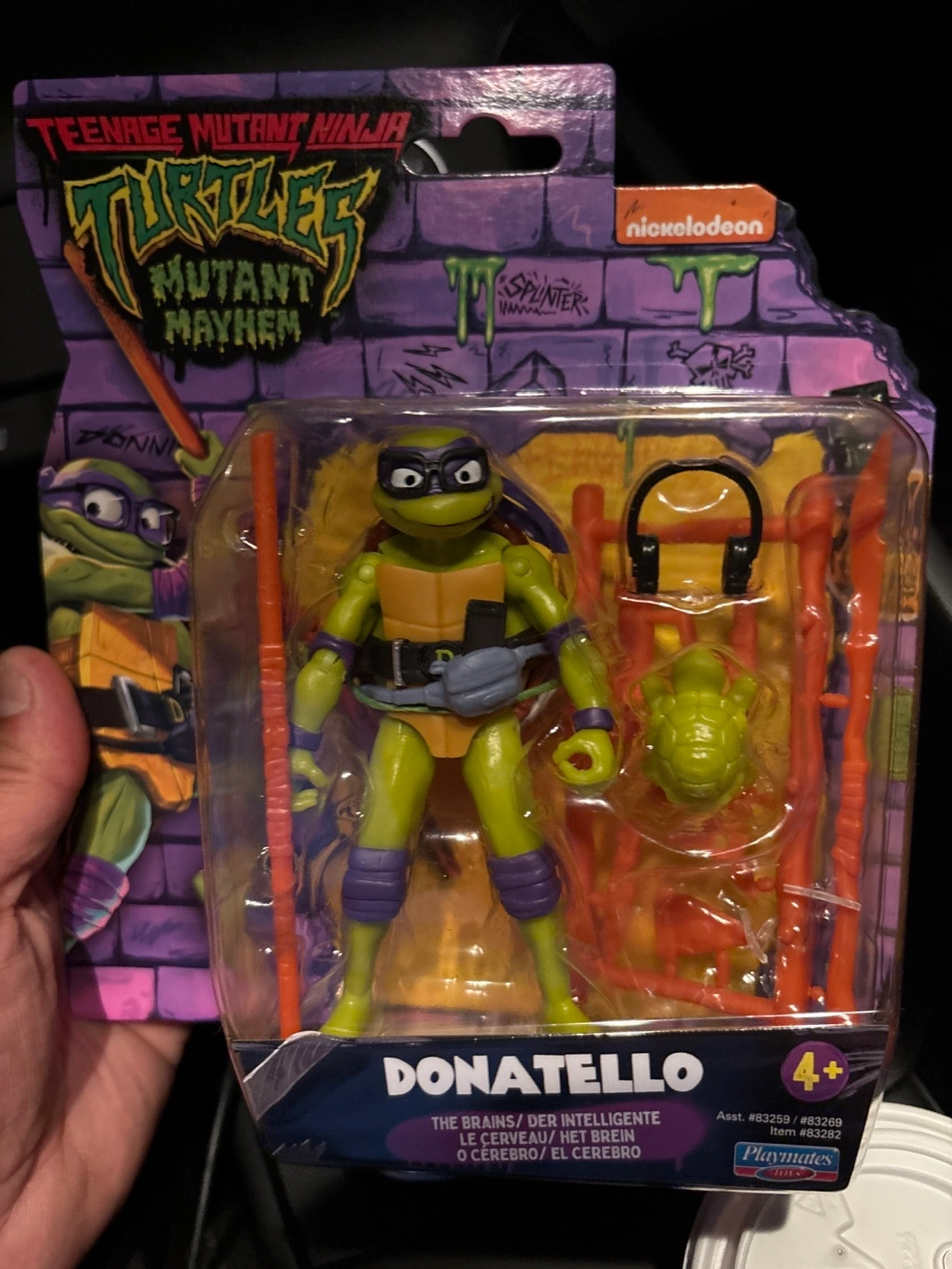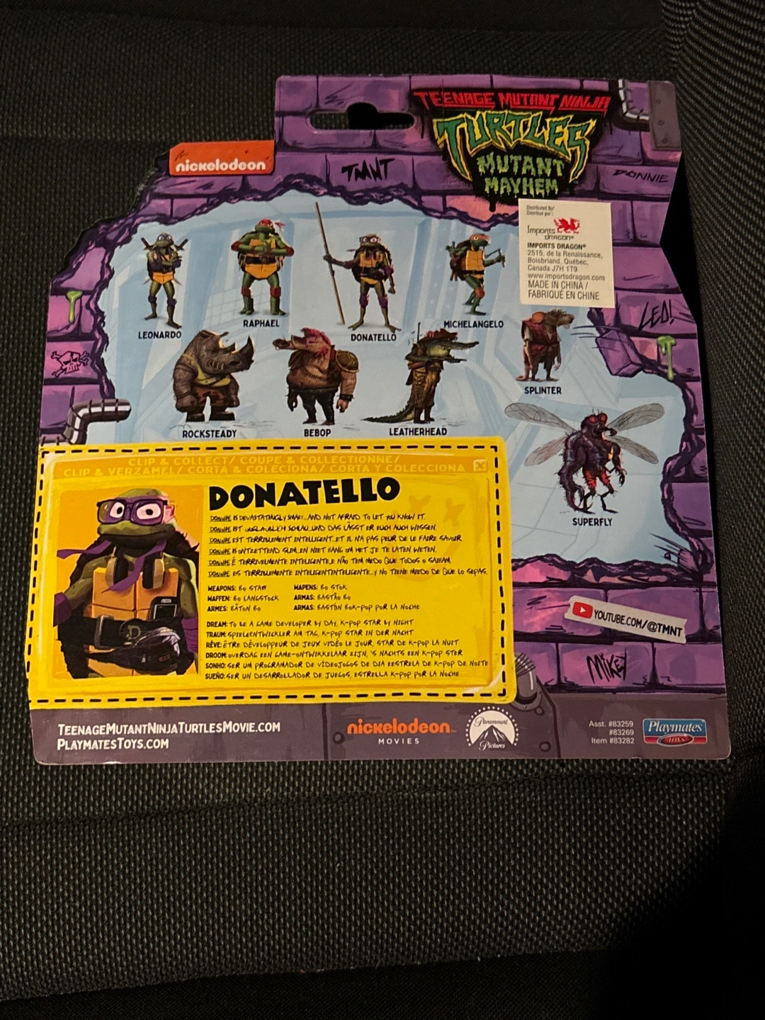 Selling a brand new Teenage Mutant Ninja Turtles Mutant Mayhem Donatello action figure! This figure is still in its original packaging and ready for a new home. It's perfect for fans of the TMNT franchise or collectors. Includes Donatello figure with accessories.