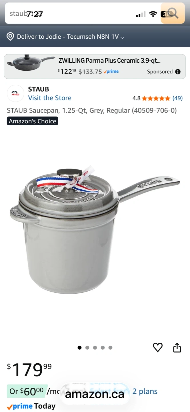 This Staub enameled cast iron sauce pan is 14cm and holds 1.2 litres. It's a beautiful graphite grey colour. This pan is suitable for induction cooking.