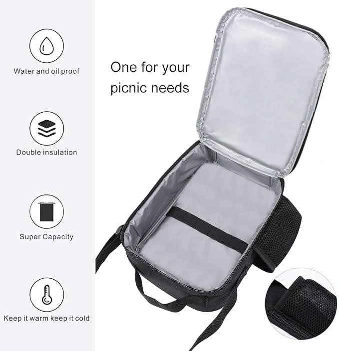 Insulated Lunch Bag: 9.84 x 7.87 x 3.15 inches. Equipped with eco-friendly lining that is soft and easy to clean. Just wipe it with a wet cloth and it's good as new. Insulated inside, can keep food and drink cold or hot for hours. Suitable for children and adults take lunch to school or work.