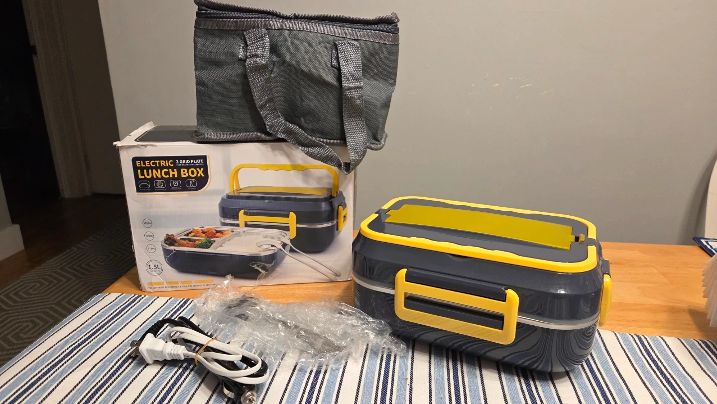 This electric lunch box comes with an insulated carrying bag, utensils and power cord. It features a 1.5L capacity for your meals.